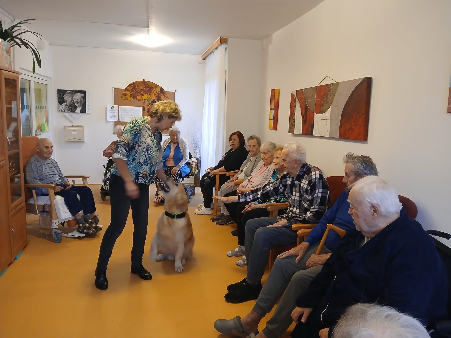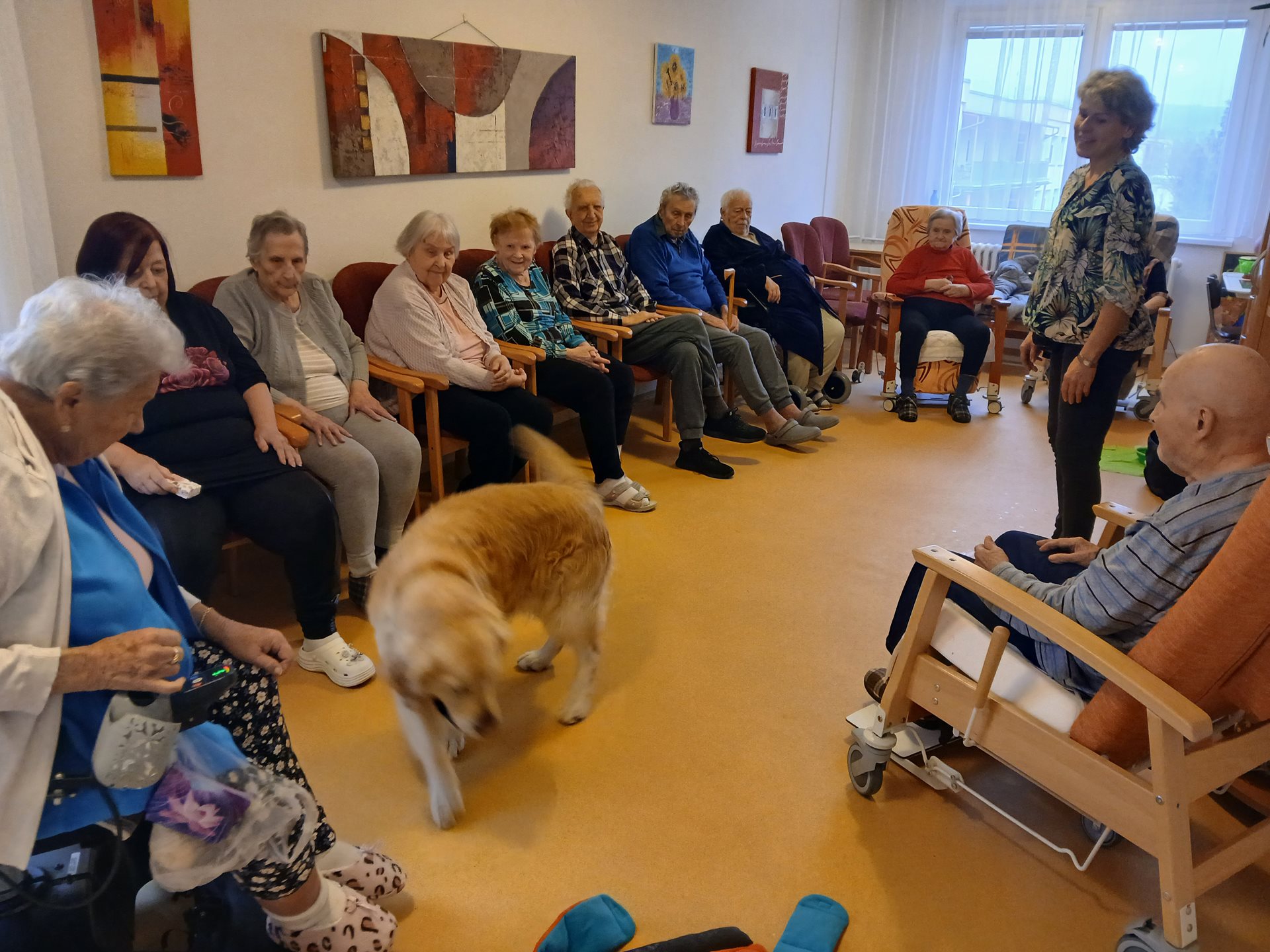 Dnes nás opět navštívili pejsci Deny a Eliot a jejich průvodce - paní PhDr. Kušnierová z organizace Auracanis. Pejsci se s klienty...