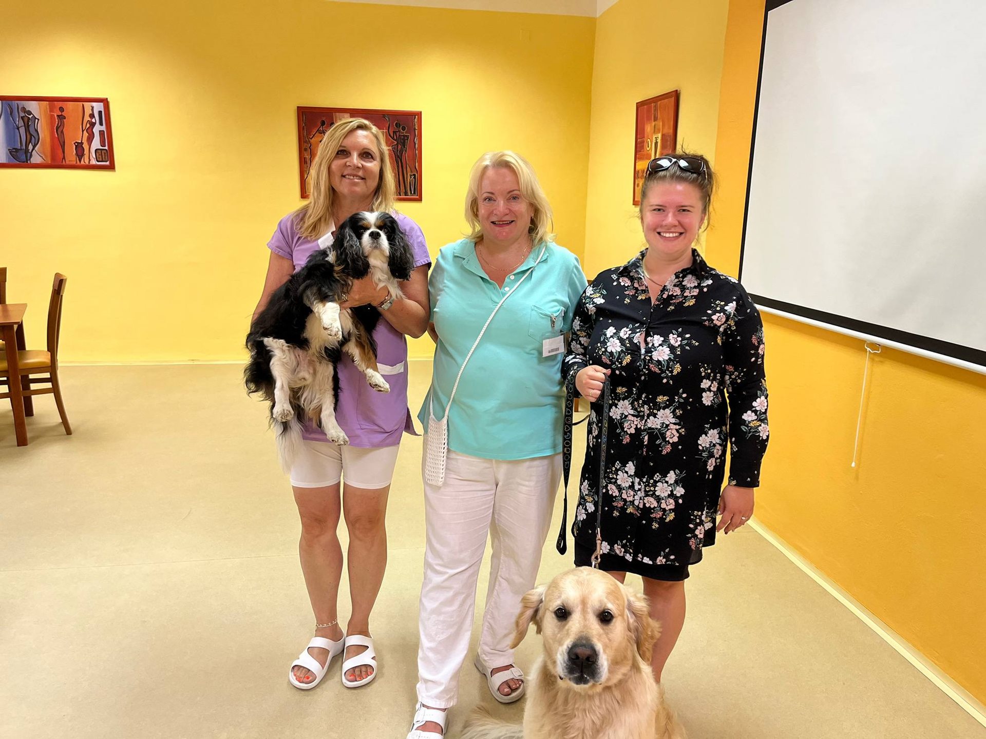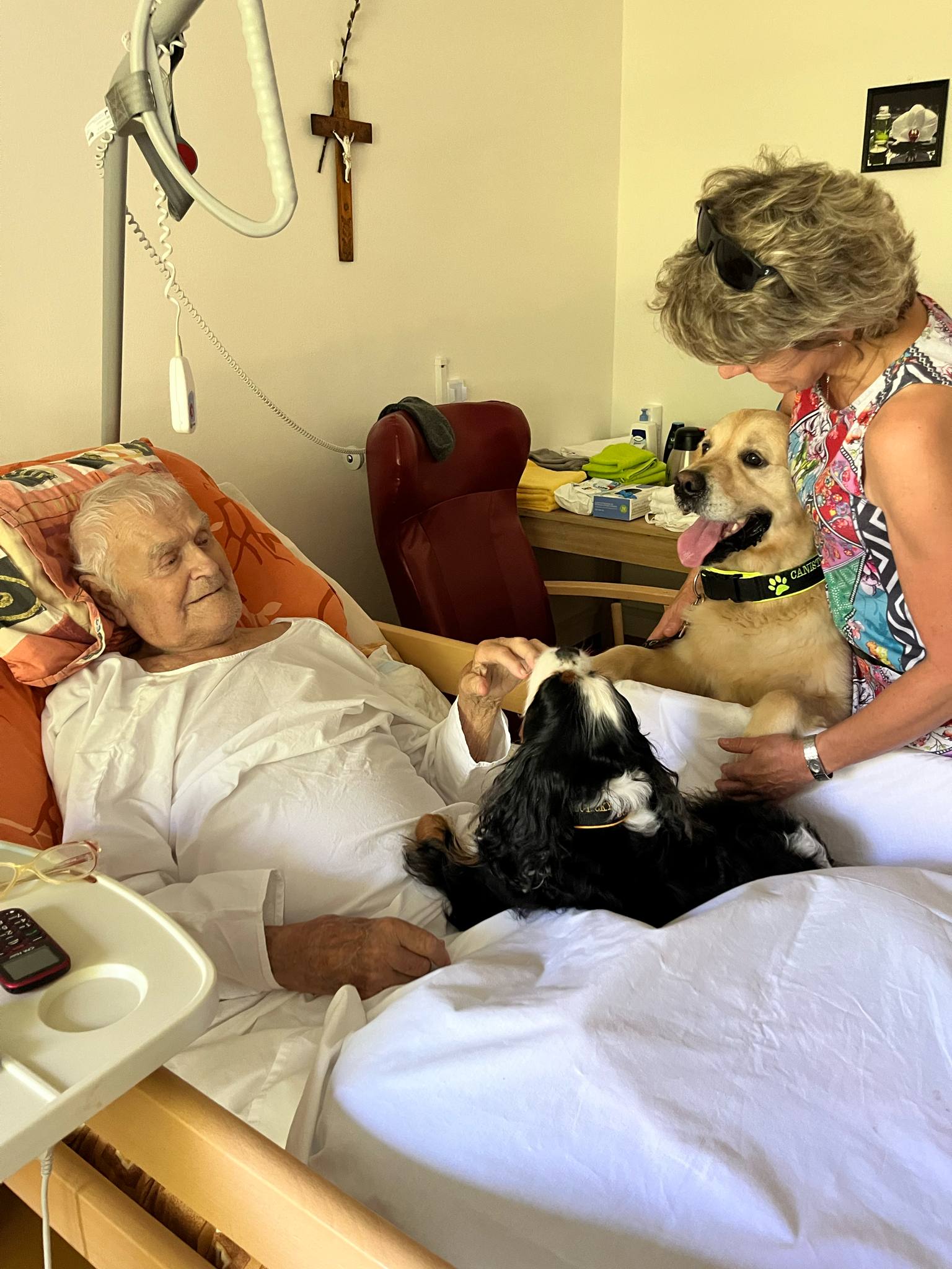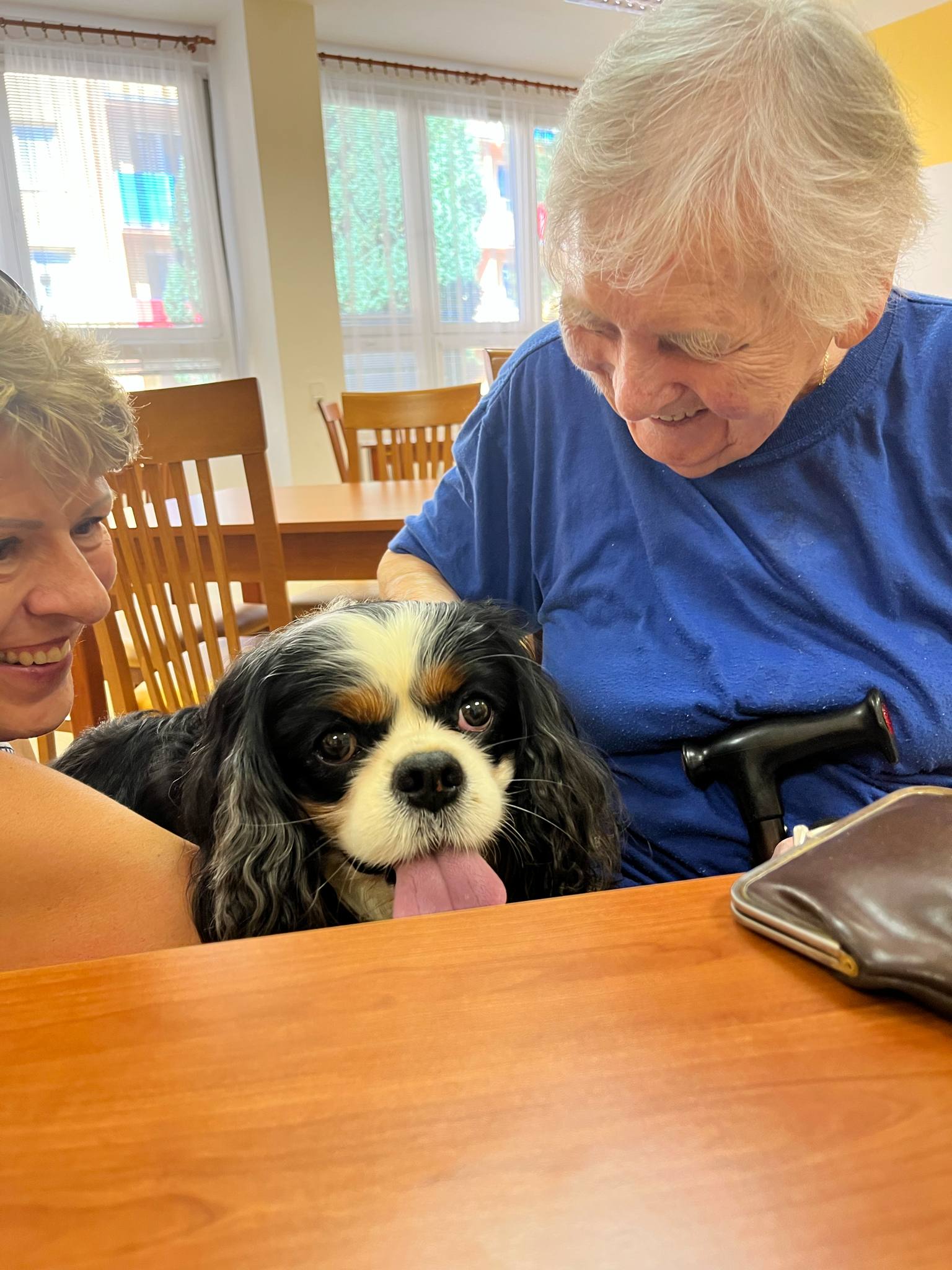 Dnes nás znovu navštívili čtyřnozí terapeuti Deny a Eliot spolu s milou PhDr. Kušnierovou z organizace Aura Canis, z.s. Přišli udělat radost dalším klientům, kteří se nemohli zúčastnit minulé canisterapie a opět se jim podařilo rozzářit dopoledne všem zúčastněným vč. personálu. U imobilních klientů pejsci přinesli do pokojů klid, lásku a spoustu pozitivní energie. Mockrát děkujeme za tuto krásnou návštěvu a těšíme se na další společné chvíle. 🐶💛