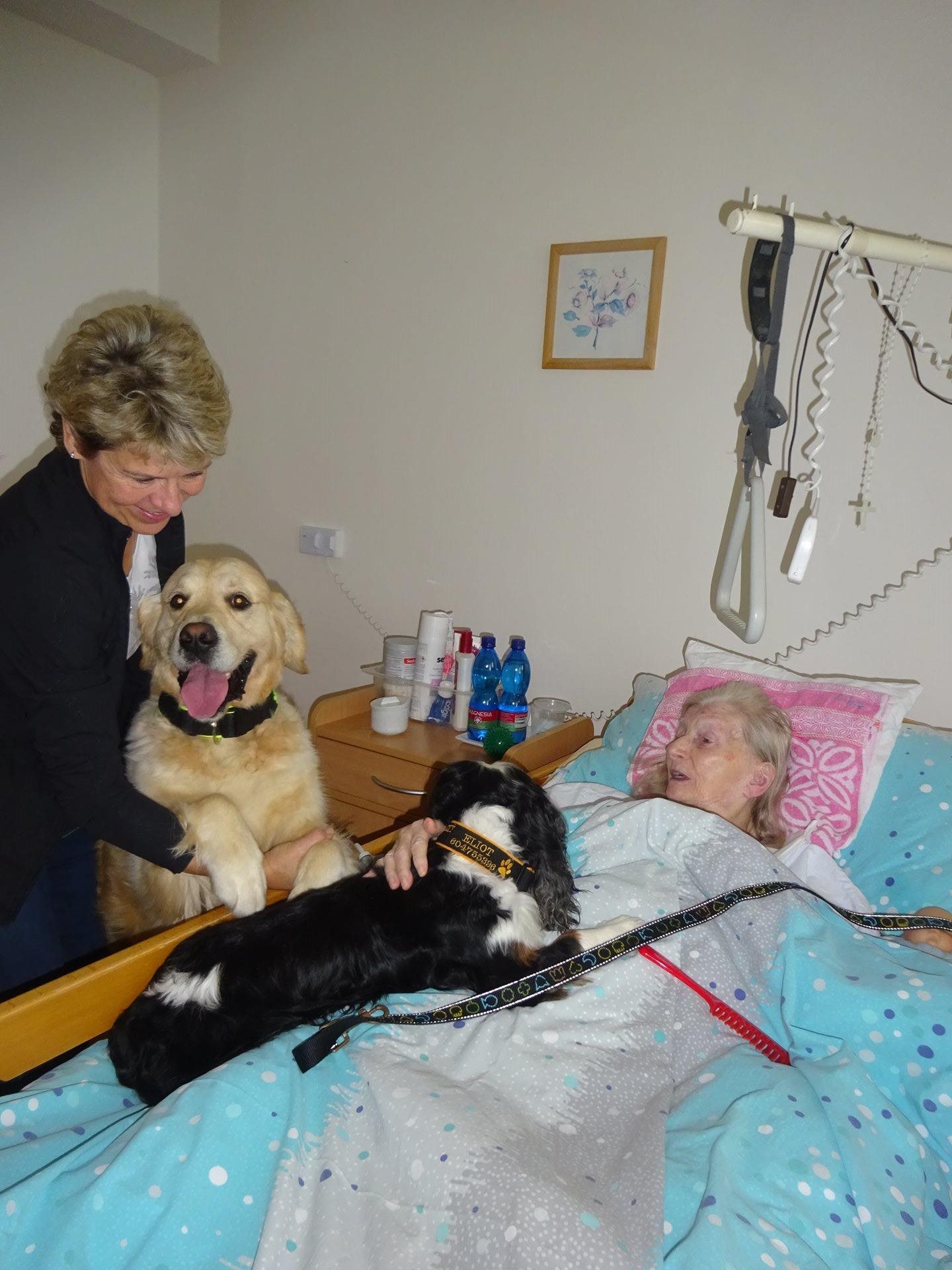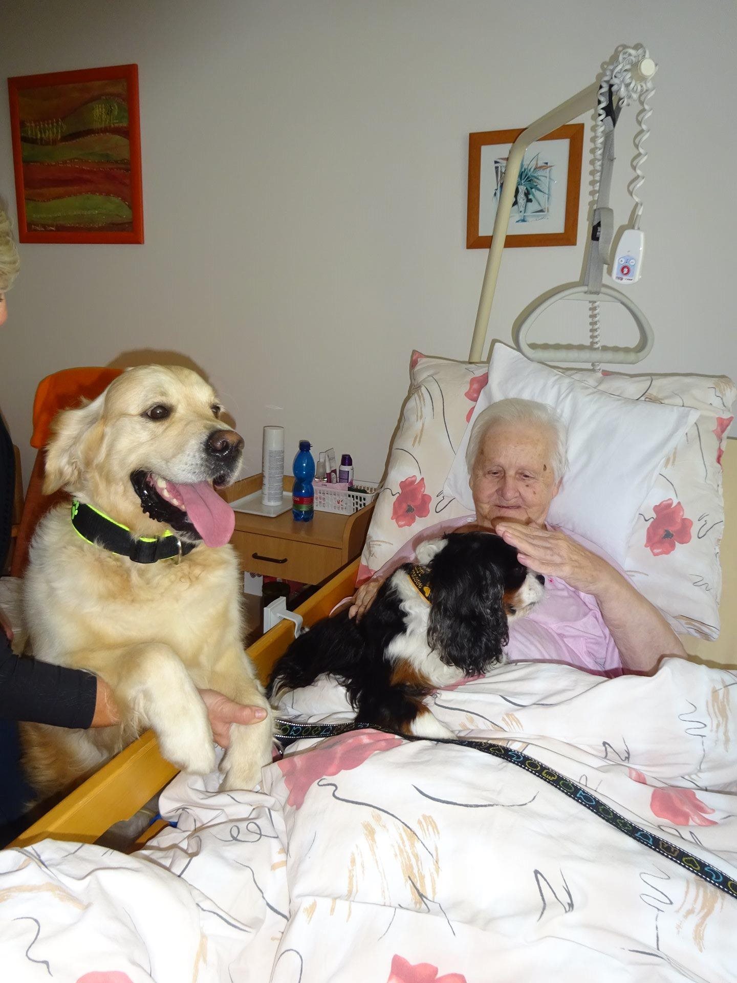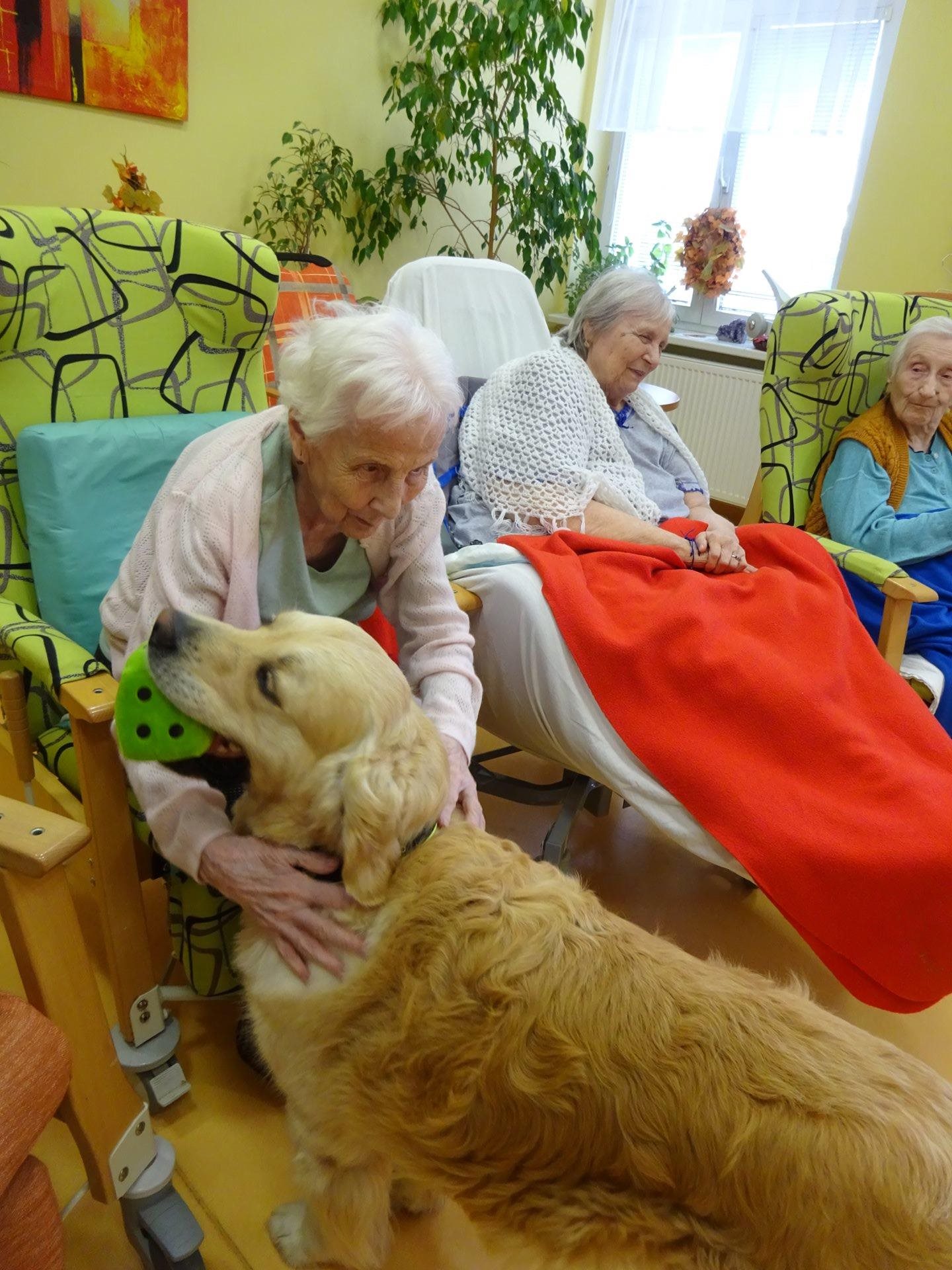 Dne 22.10.2024 poctili náš Domov návštěvou dva pejsci v doprovodu terapeutky paní PhDr. Kušnierové z organizace Aura Canis. Všichni jsme se těšili, setkání jsme si aktivně užili a byli jsme velmi spokojení. Prožili jsme příjemné kontaktní dopoledne, a to včetně klientů, kteří zůstávají i přes den v pokojích na lůžku.
