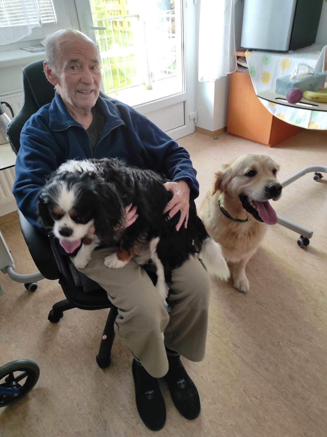 Návštěva pejsků Denyho a Eliota s paní PhDr. Kušnierovou z organizace AuraCanis.