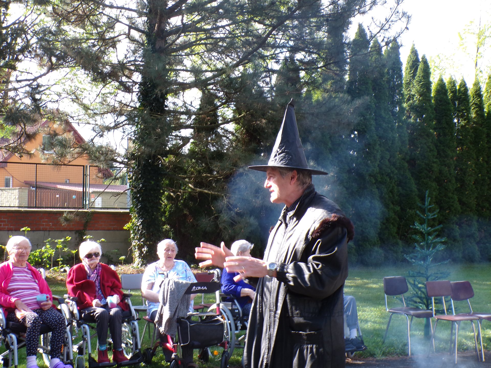 Dne 23.4.2025 se na čarodějnickém reji setkali klienti, zaměstnanci, čarodějnice a čarodějové. Do programu přispěli i čarodějničtí učni z blízké Mateřské školy Chválkovice. Za doprovodu živé hudby jsme se dobře bavili. Náladu nepokazilo ani upálení čarodějnice. Byla papírová. Na závěr jsme pečlivě ozdobili a postavili májku, která bude areál zdobit až do konce května.
