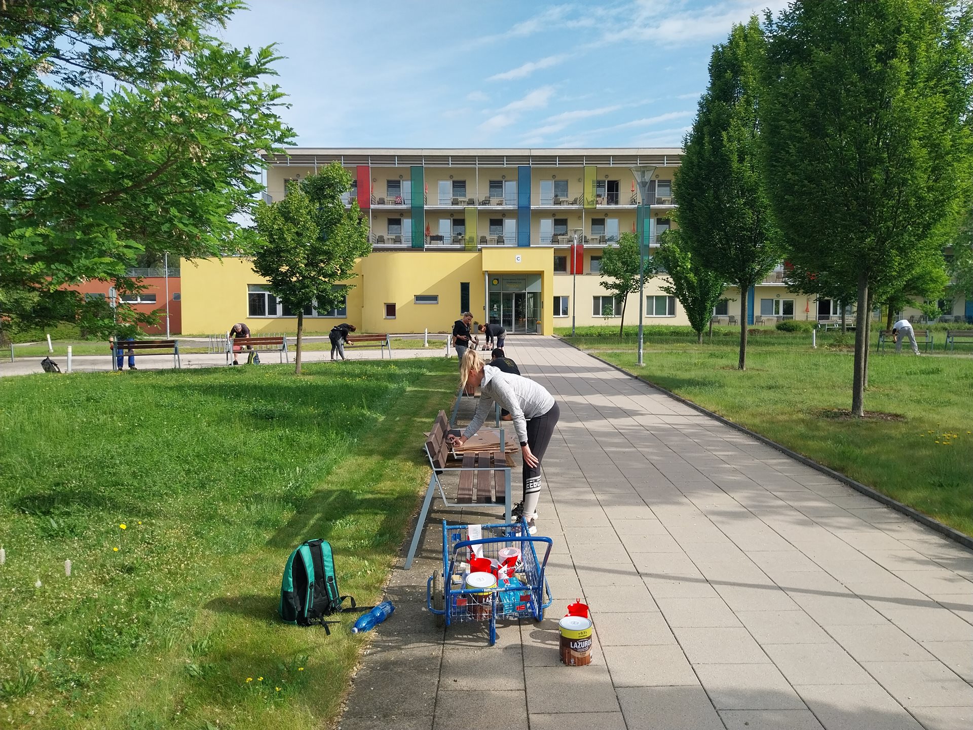 Dne 23.5.2024 přišli pomoct s natíráním venkovních laviček pracovníci Magistrátu města Olomouce. Osmirkovali a natřeli celkem 33 laviček. Mnohokrát za tuto pomoc děkujeme.