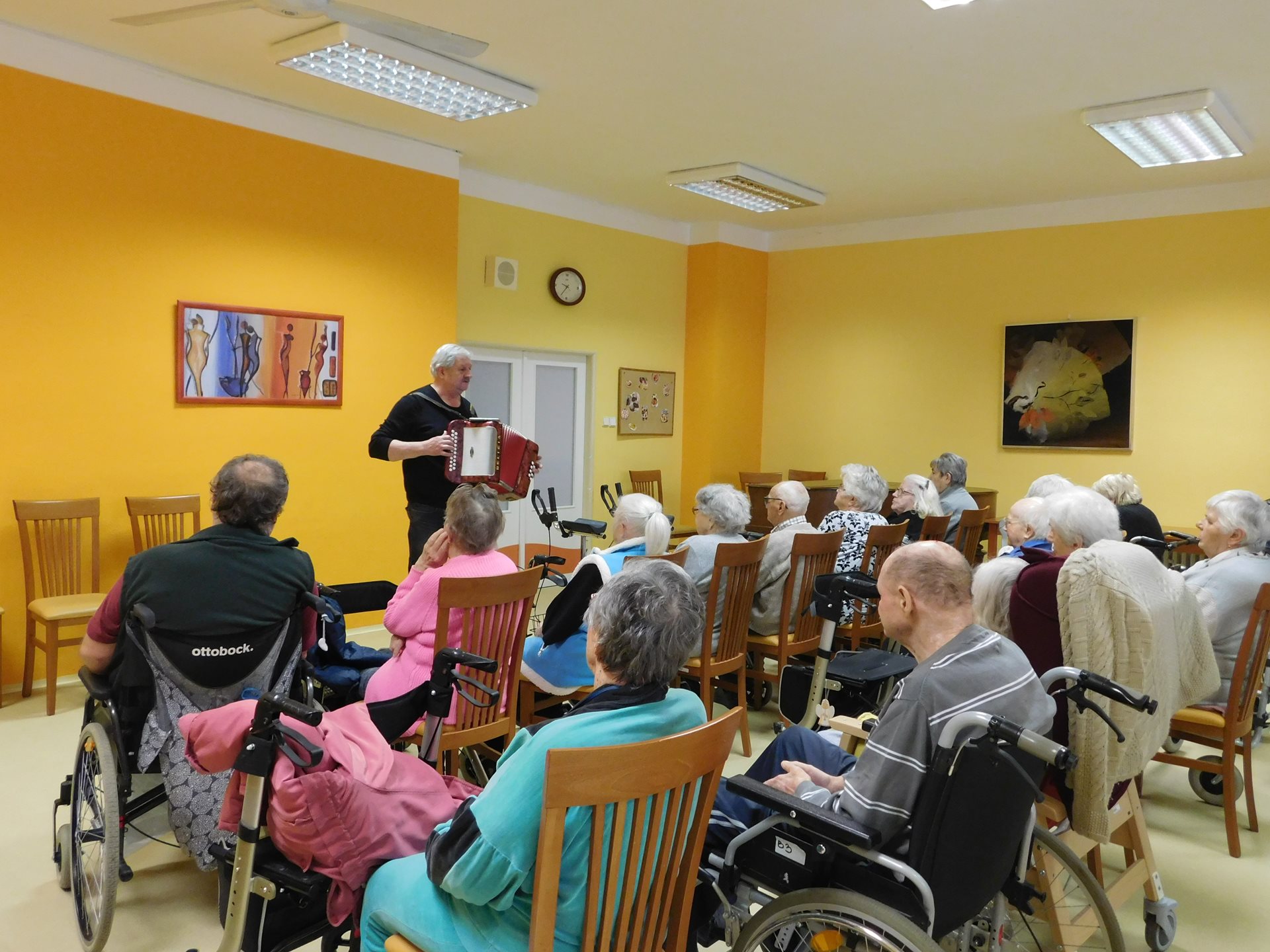 Hudební posezení proběhlo dne 28. 3. 2024 v budově B. Společně jsme si zazpívali za doprovodu zvučné harmoniky a silného pěveckého doprovodu pana Frantíka. Děkujeme za příjemně strávené dopoledne.