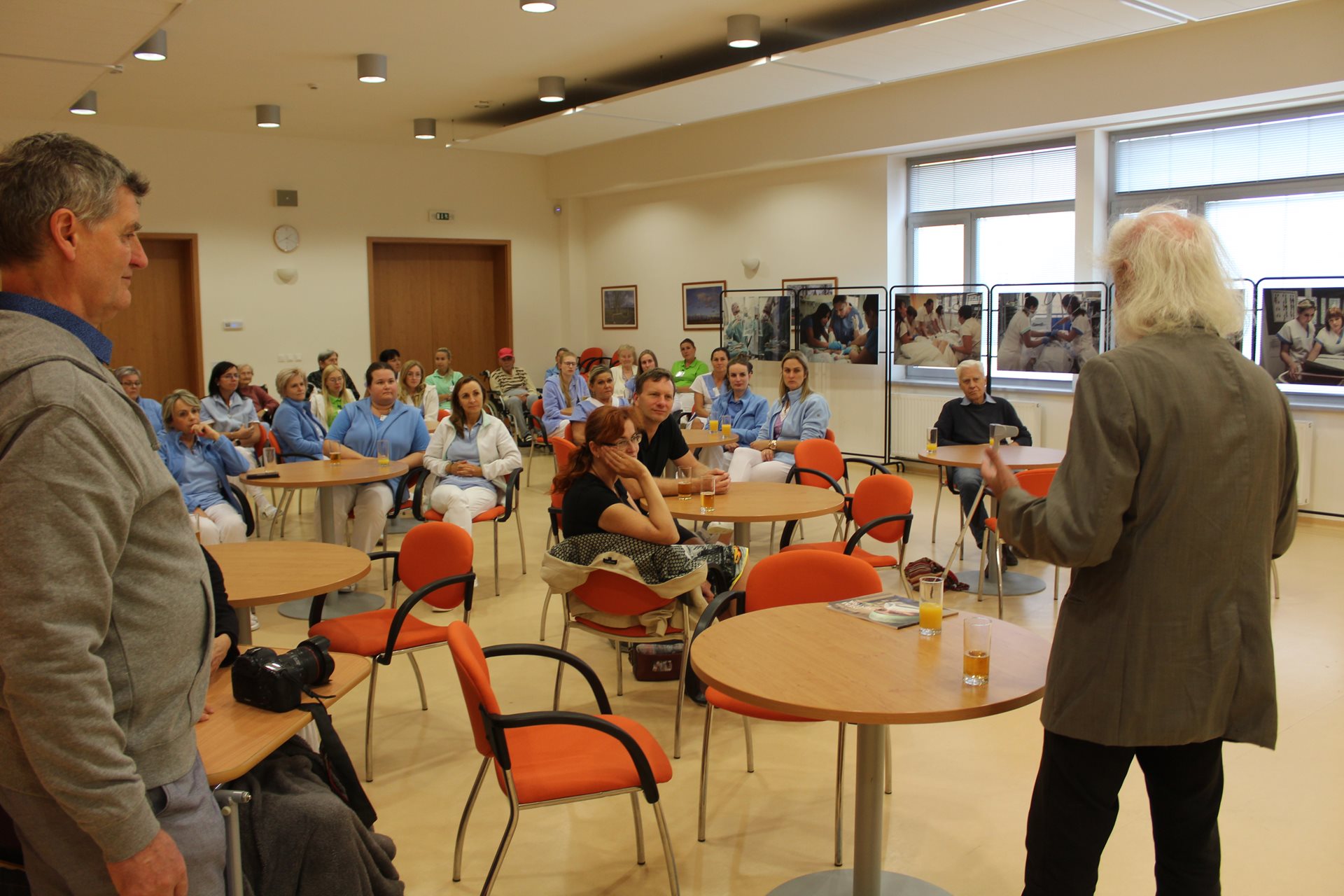 Výstava, vzniklá ve spolupráci se spolkem vysokoškolsky vzdělaných sester, je součástí celosvětové kampaně *Nursing Now*, jejímž cílem je vzdát hold a pozvednout povědomí o práci zdravotních sester. Barevné fotografie dodávají výstavě živost a umožňují divákům prožít intimní momenty péče, odvahy a lidskosti v plné síle. Vernisáž proběhla i za účasti našich skvělých zdravotních sester, které jsou nepostradatelnou součástí péče o naše klienty.