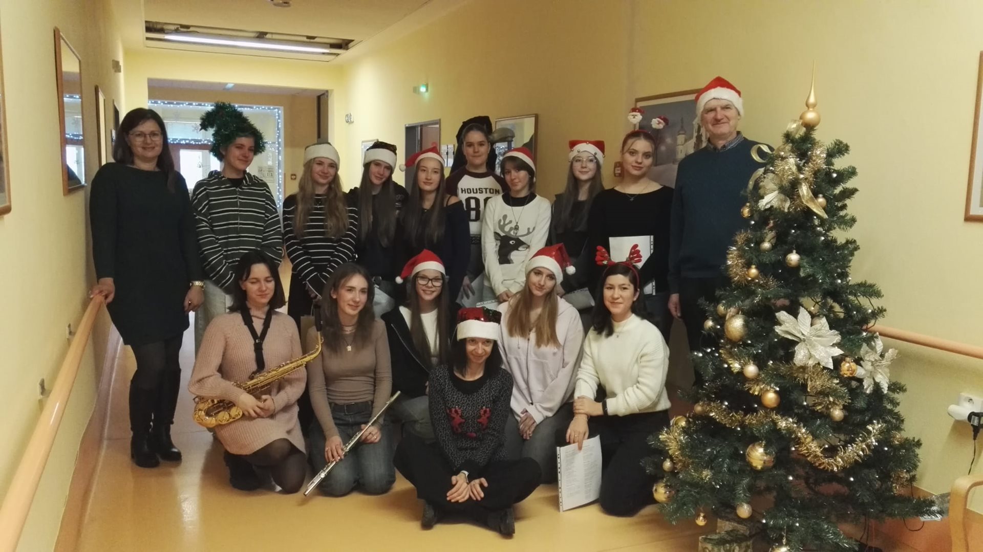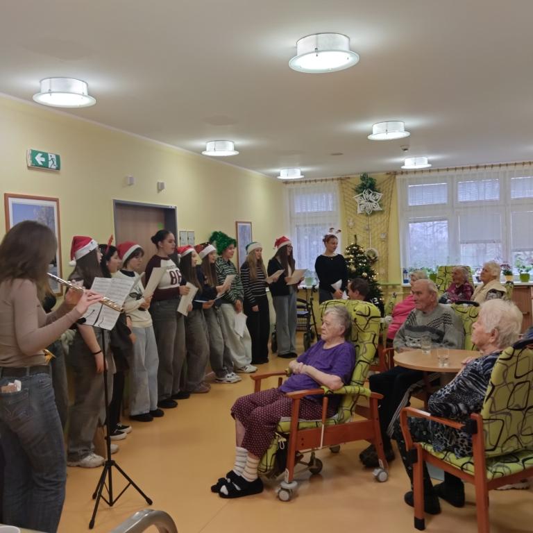Studenti SOŠ grafiky a médií pod vedením paní učitelky Liškové se v budově A dopoledne věnovali klientům, a to včetně těch, kteří nemohou opustit svoje pokoje. Zazpívali krásné koledy s hudebním doprovodem a rozdávali tak radost i dojemné chvilky po chodbách na všech odděleních.