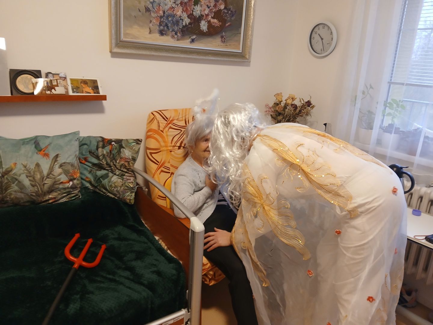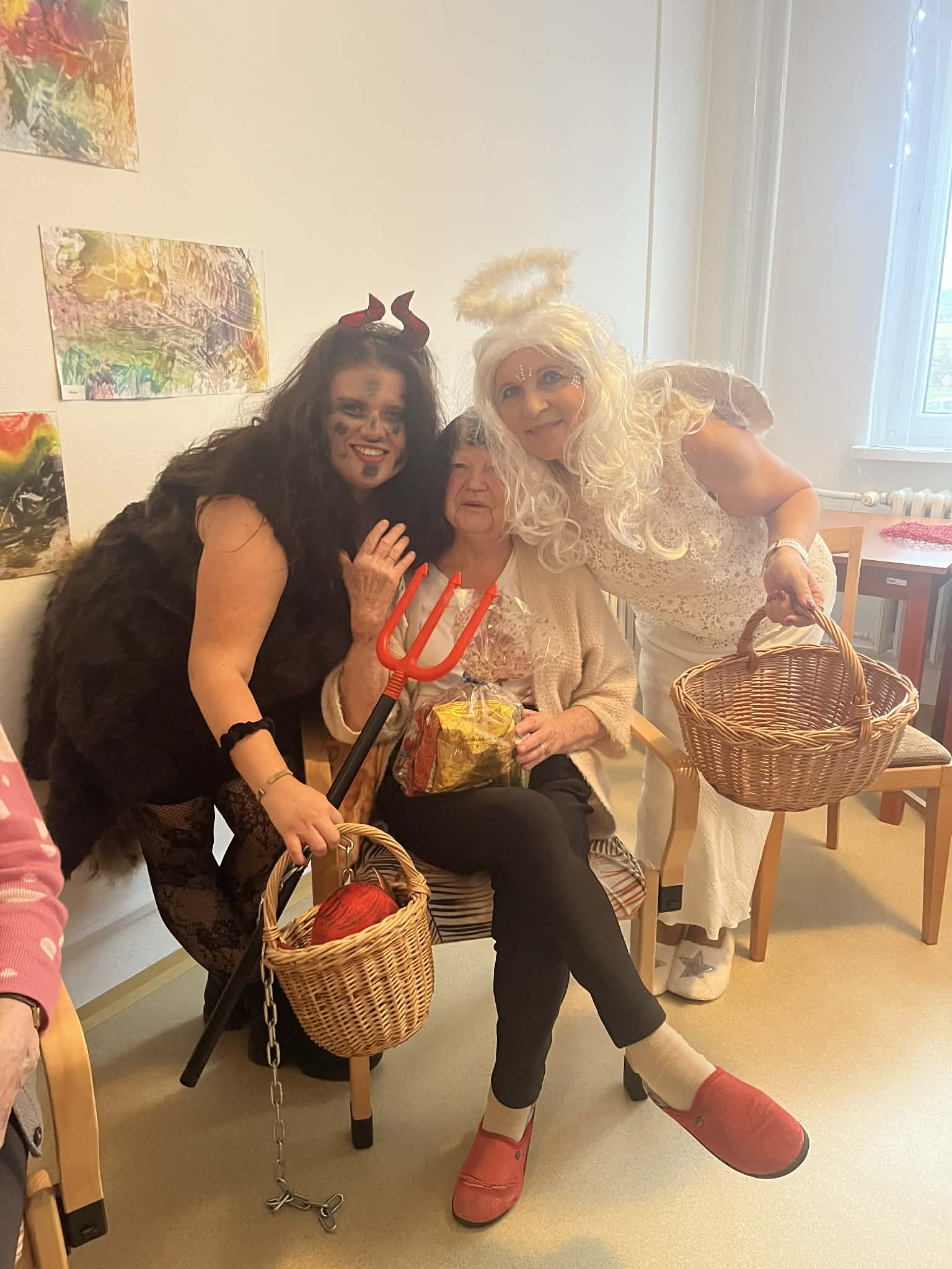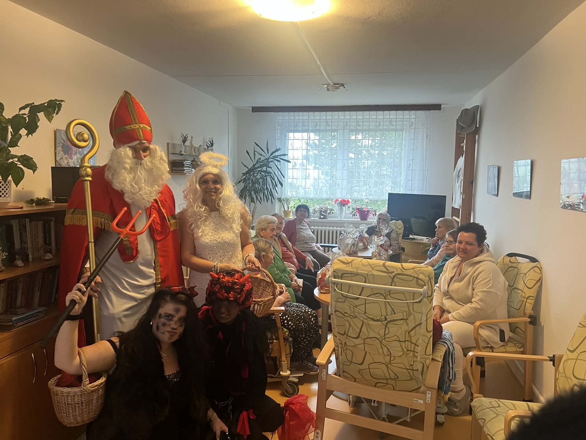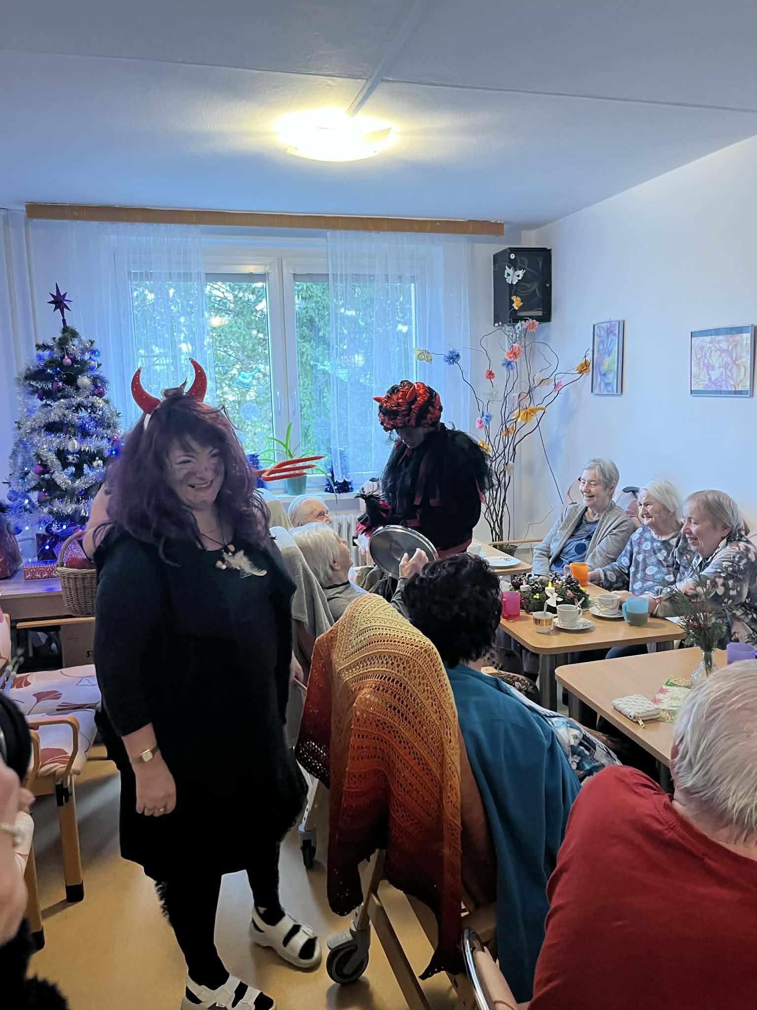 V našem domově navštívil klienty personál v rolích MIKULÁŠE, ČERTA A ANDĚLA. Ve společenských místnostech jednotlivých oddělení rozdával klientům připravené balíčky. Ke svátečnímu setkání patřila také tradice – od klientů jsme si vyslechli básničku nebo písničku, což přineslo mnoho úsměvů i dojemných chvilek.