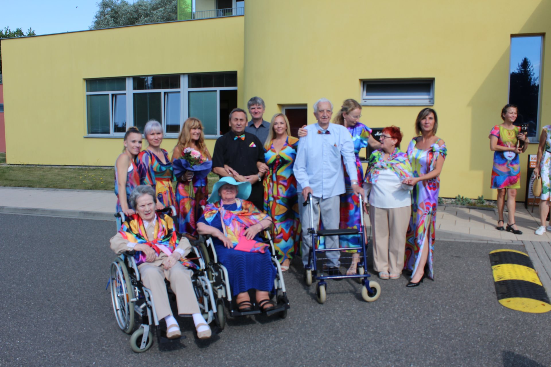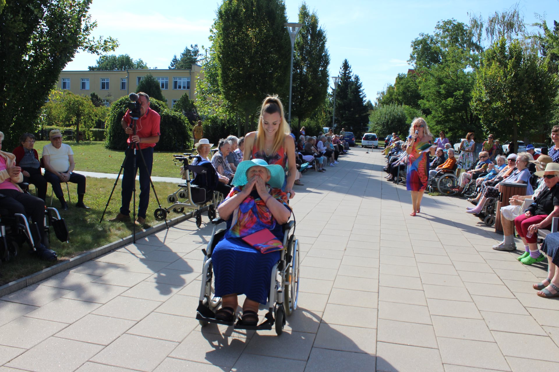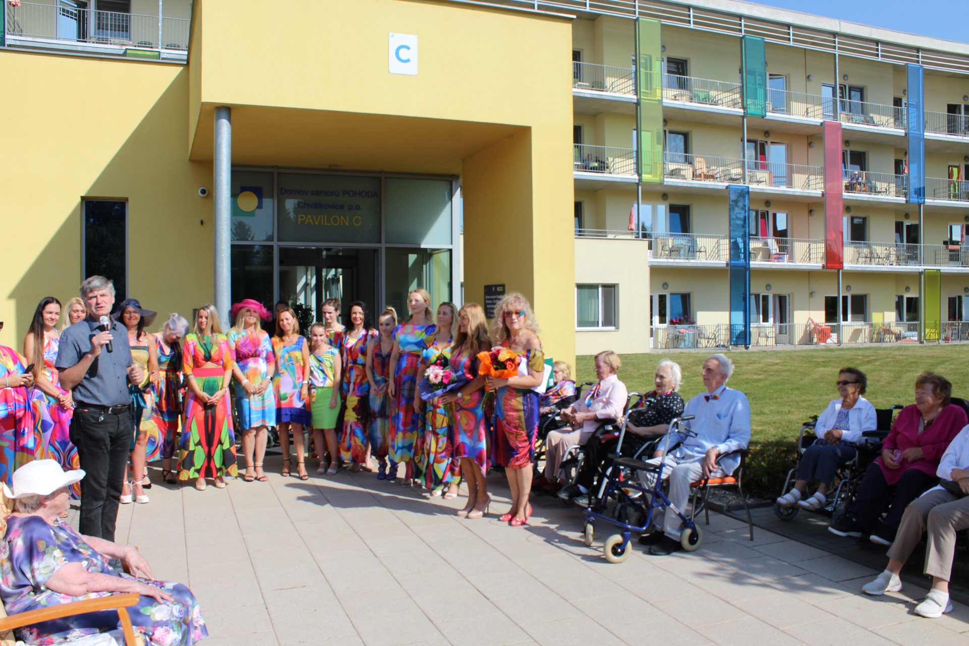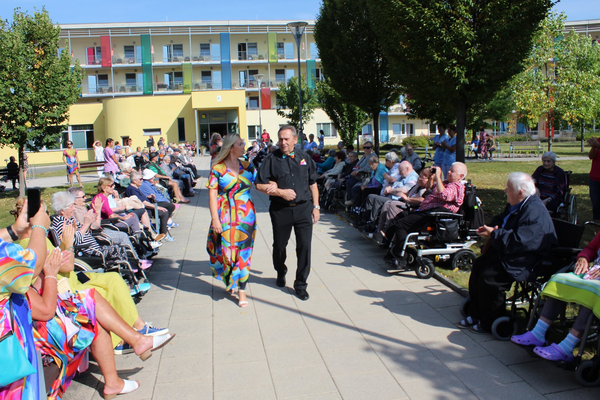 Začátkem září jsme si užili slunečné dopoledne plné barev, úsměvů a radosti. Pod vedením módní návrhářky a výtečné malířky Aleny Cikové se u nás představily nádherné letní modely v pestrých barvách. Na improvizovaném mole před pavilónem C se vždy objevil jeden z našich klientů v doprovodu pracovníka, za bouřlivého potlesku a nadšených úsměvů publika. Celým programem provázela paní Helena Peštuk Sedláčková, která svým mluveným projevem akci dodala správný šmrnc. Byl to krásný závěr léta, na který budeme dlouho vzpomínat.
