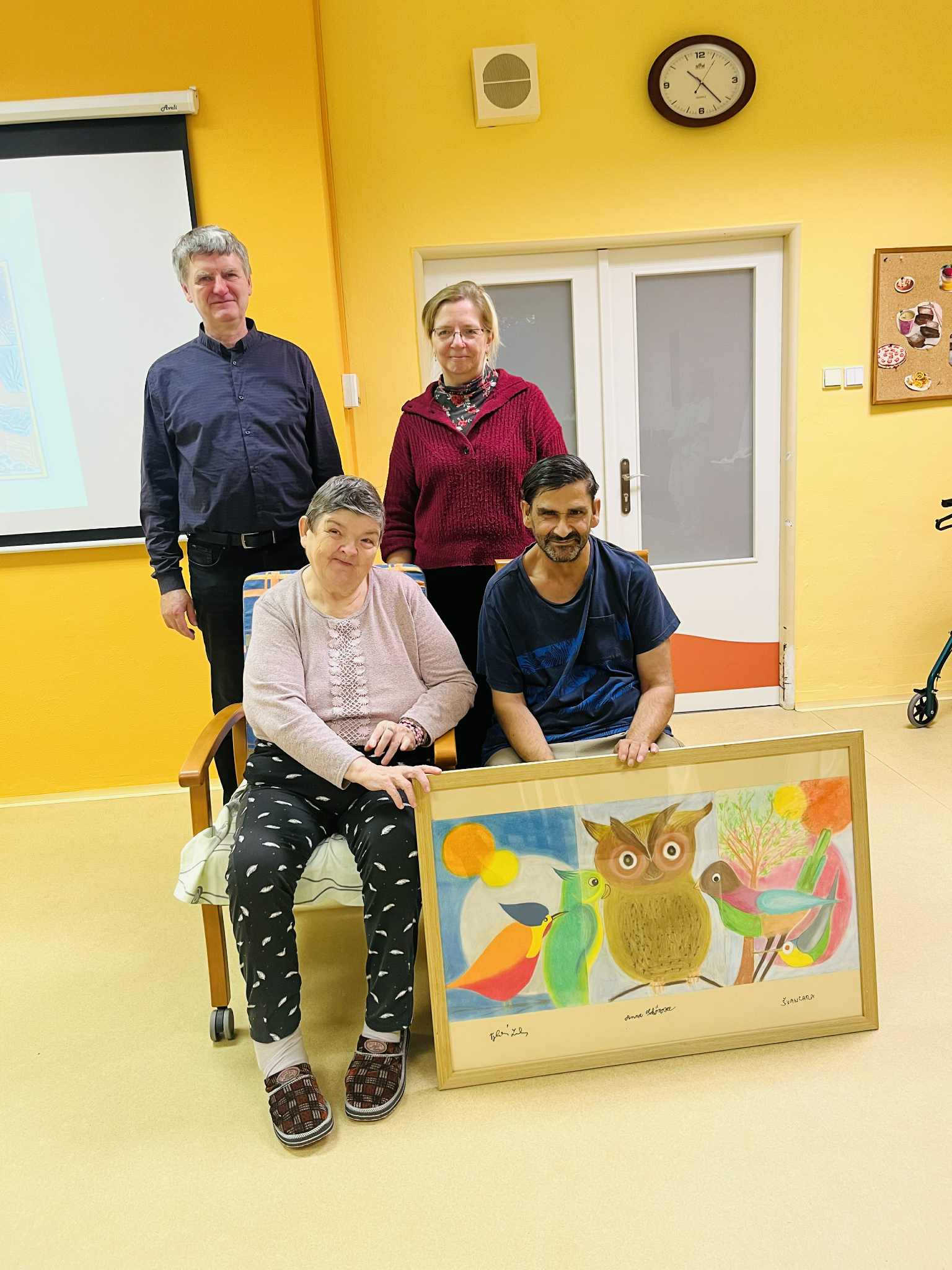Naši umělci se pak s paní Vyhlídalovou i panem ředitelem hrdě se svým dílem vyfotili. 📸