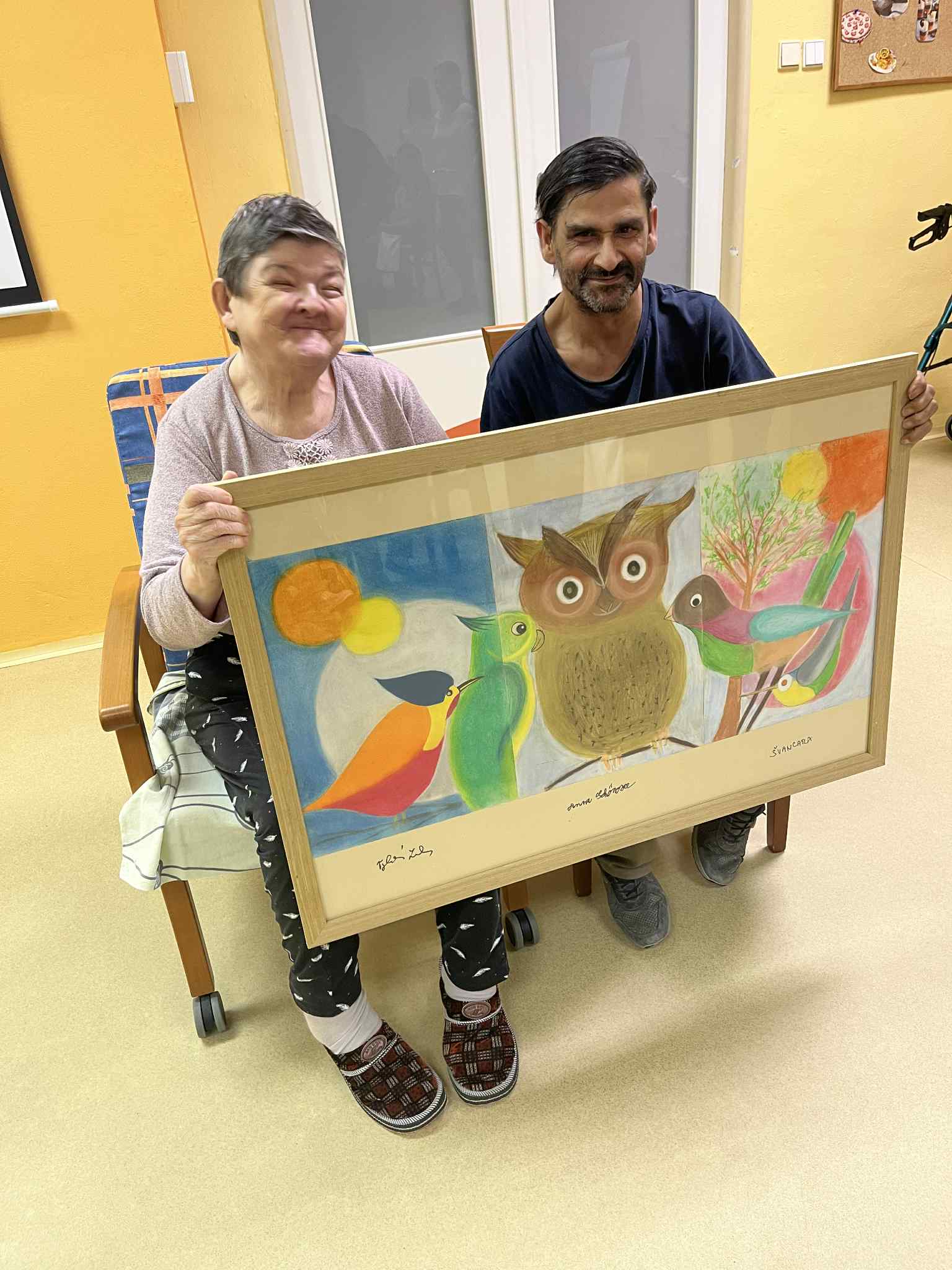 Pod vedením paní Mgr. Lenky Vyhlídalové tehdy tvořili obrázky inspirované malířem Františkem Vojkůvkou. Z těch pak paní Vyhlídalová vytvořila nádhernou koláž, která procestovala kus republiky – vystavována byla u nás v DS Pohoda Chválkovice, v DS Burešov ve Zlíně, na Zámku Holešov, v Knihovně Olomouc – Holice, a dokonce i na Konferenci Aktivního stárnutí MPSV v Brně.