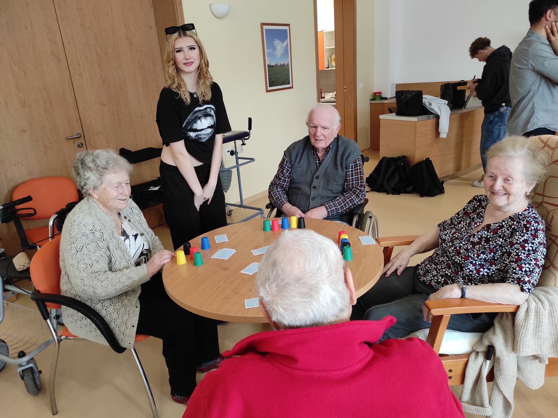Studenti SOŠS Olomouc si pro naše klienty připravili různé úkoly, hry a aktivity. Setkání bylo pro klienty i studenty velmi příjemné. Děkujeme za čas, který jste si na nás udělali a milou návštěvu.