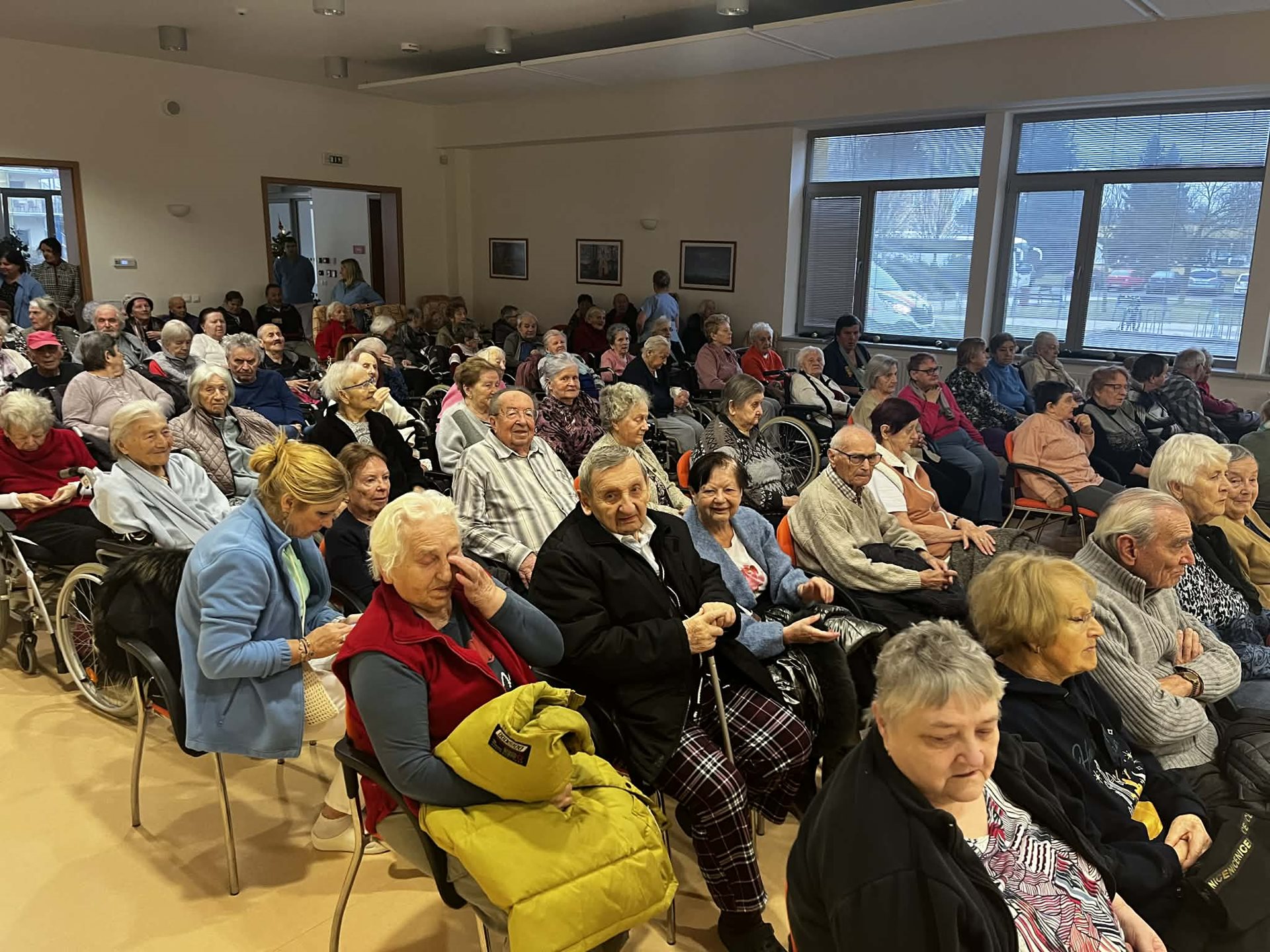 Klienti si s hudebníky rádi zazpívali a pro mnohé z nich byl koncert velmi dojemným zážitkem. Děkujeme posádkové hudbě za milou návštěvu a radost, kterou našim klientům opět přinesla.