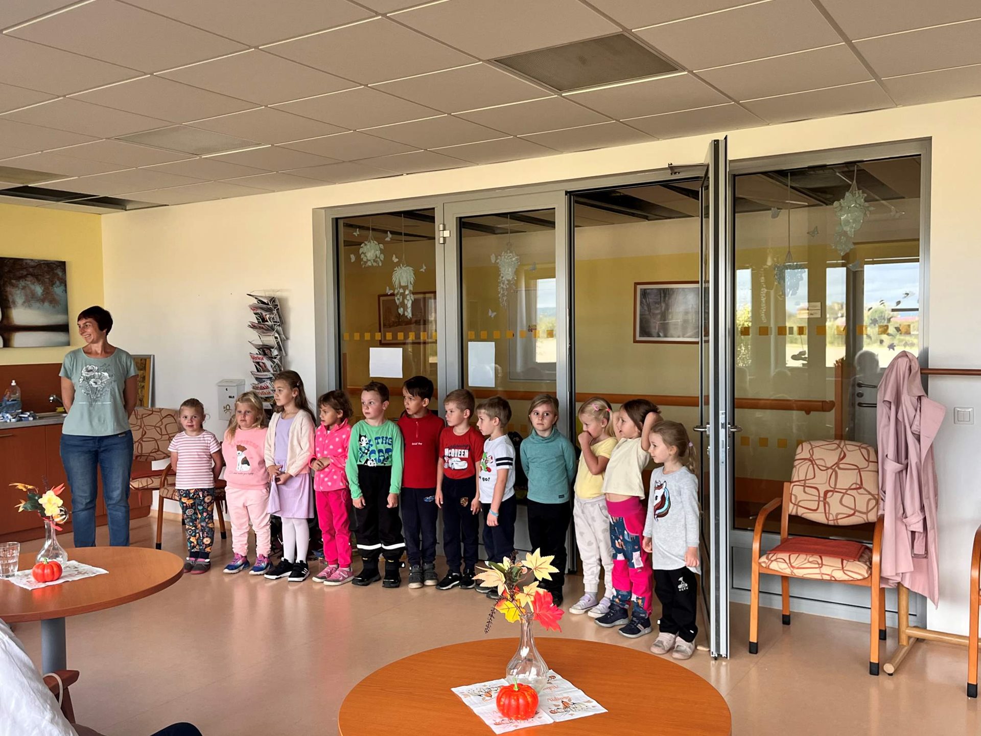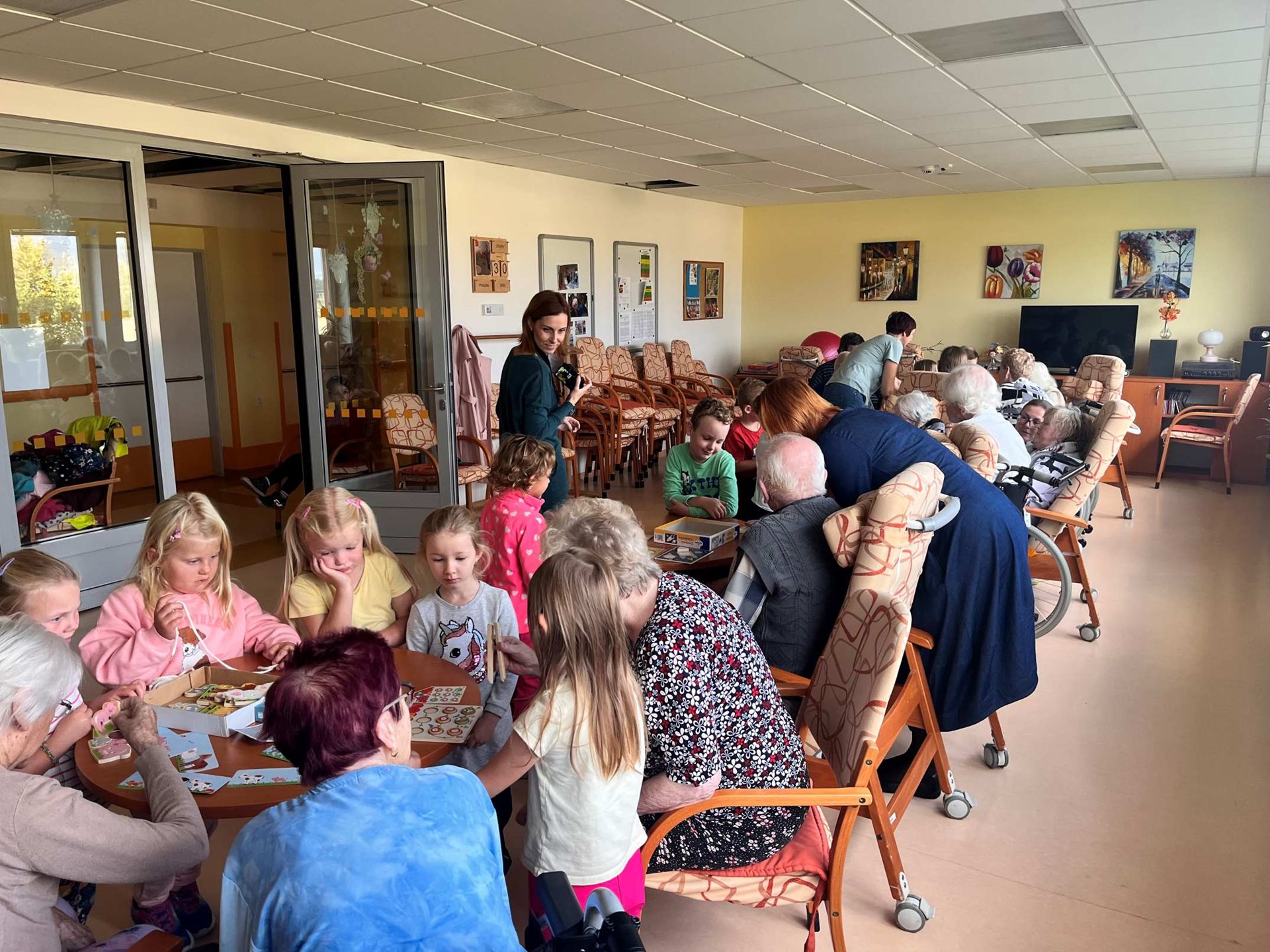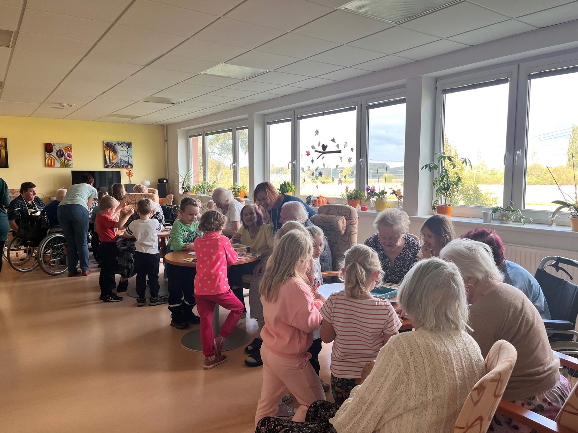 V rámci programu Mezi námi dnes proběhlo další setkání klientů DS Pohoda s dětmi z MŠ Chválkovice. Děti, přes počáteční stydlivost, předvedly krásné vystoupení a rozezpívaly a rozpohybovaly i přítomné klienty. Také nám donesly ukázat různé hry, které ve školce slouží jako zábavné didaktické pomůcky k rozvoji jejich schopností a dovedností. Společně jsme si je pak mohli i vyzkoušet.