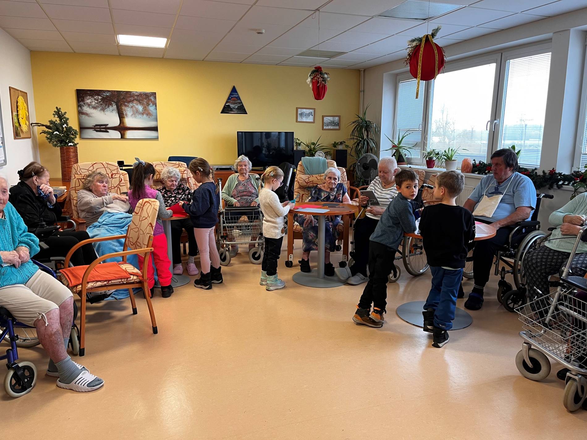 Dnes nás navštívily děti z MŠ Chválkovice. Pod vedením učitelek děti zazpívaly a zarecitovaly a navodily u nás vánoční atmosféru. Při společném povídání jsme pak vytvořili krásné papírové čerty, každý z nich byl originál!