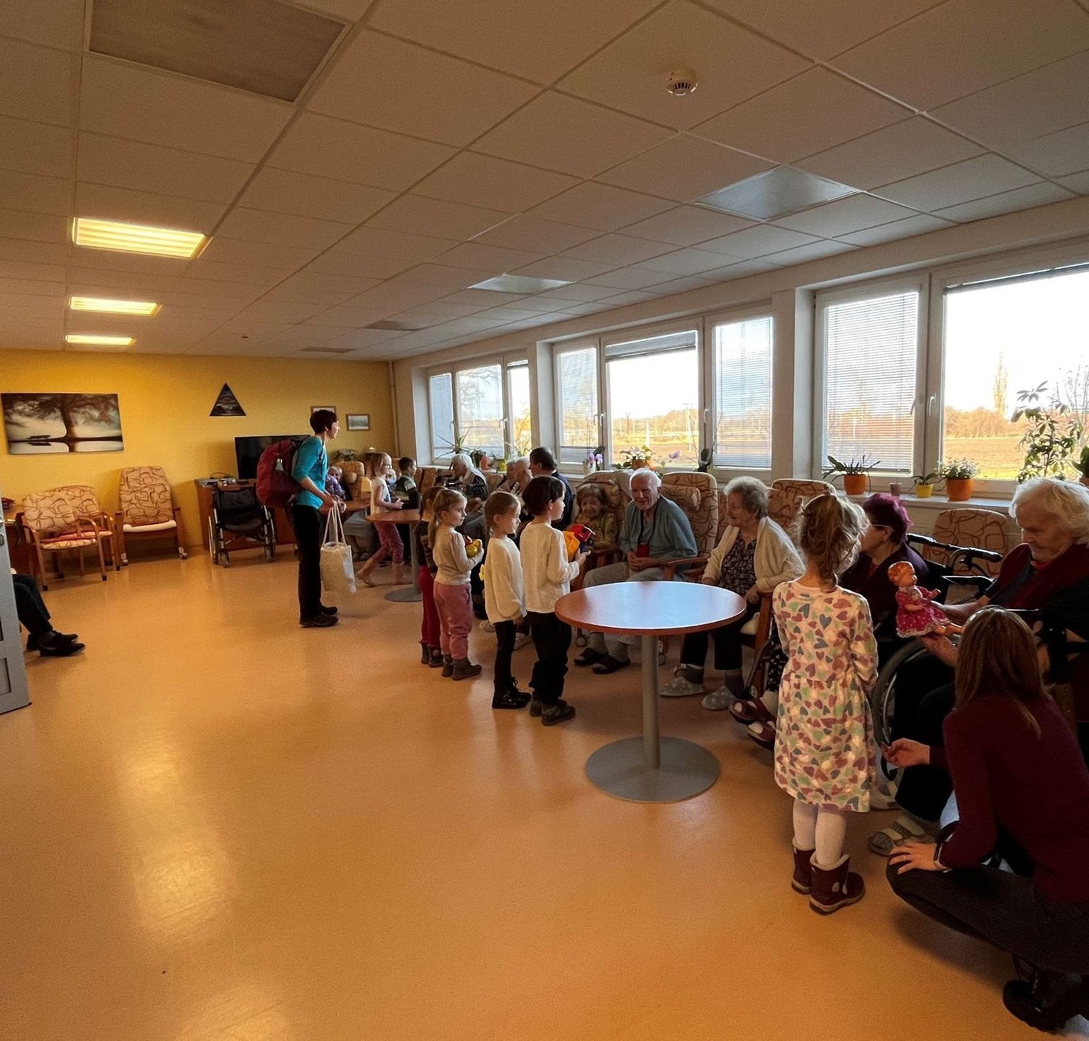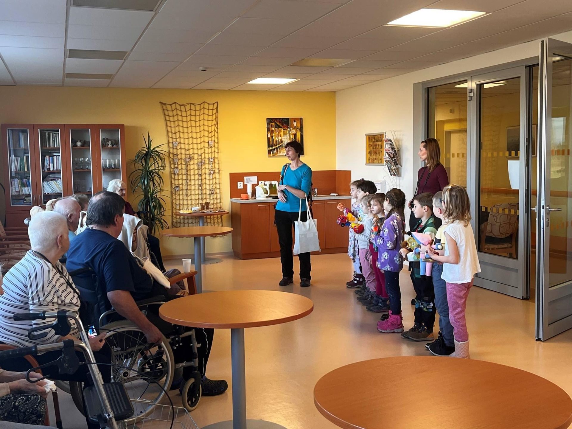 Dnes nás potěšily návštěvou děti z MŠ Chválkovice. Klientům přinesly ukázat hračky svých maminek, babiček, dědečků, tetiček a strýčků... Povídali jsme si společně o tom, jak si hrávaly děti před mnoha lety, klienti si při tom zavzpomínali na své dětství a kamarády...