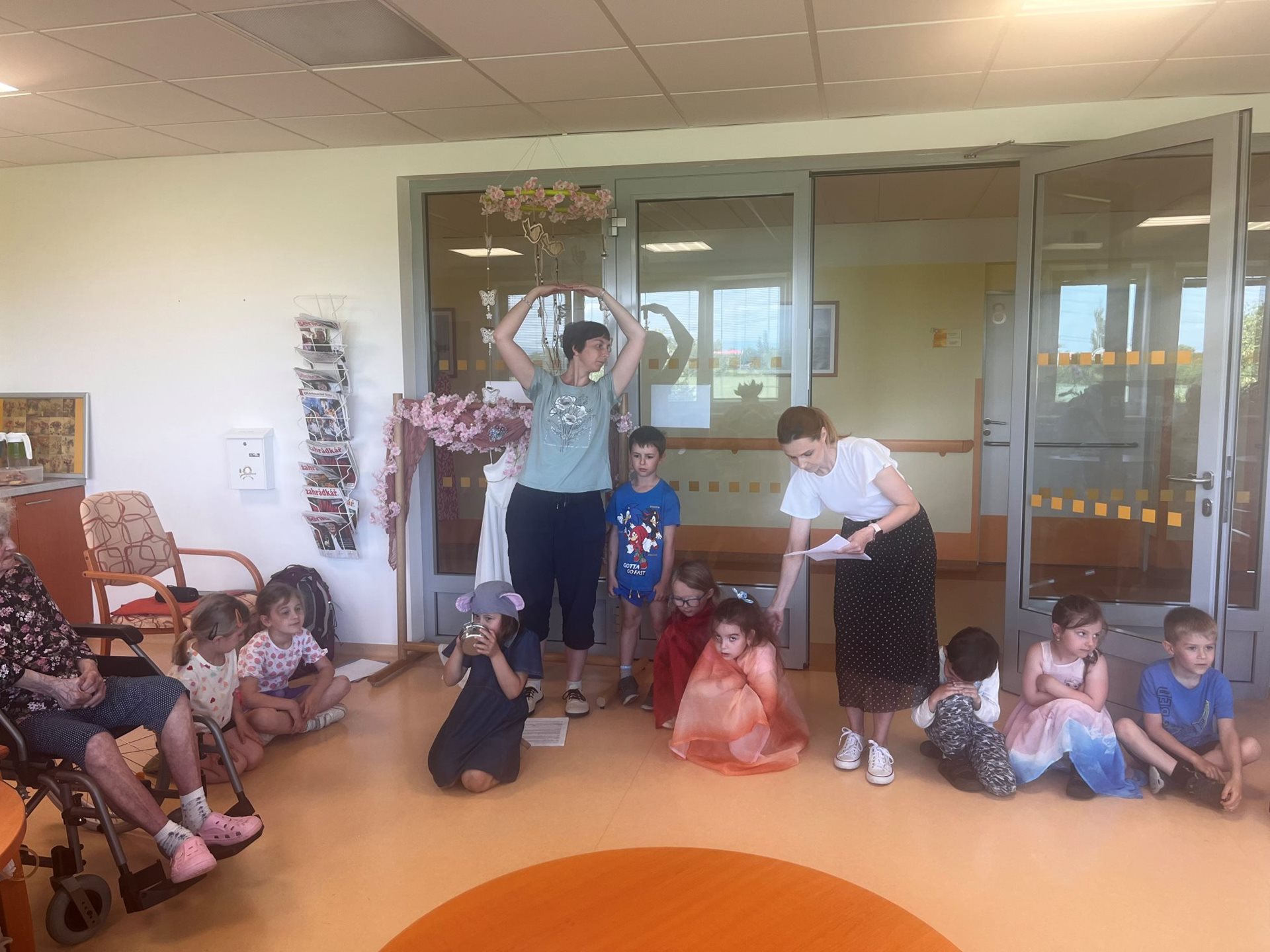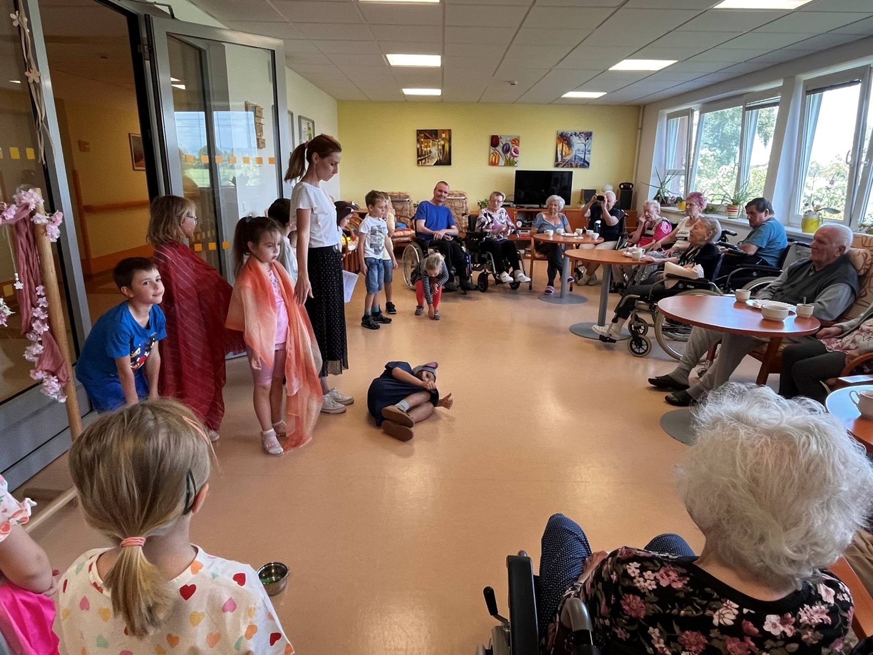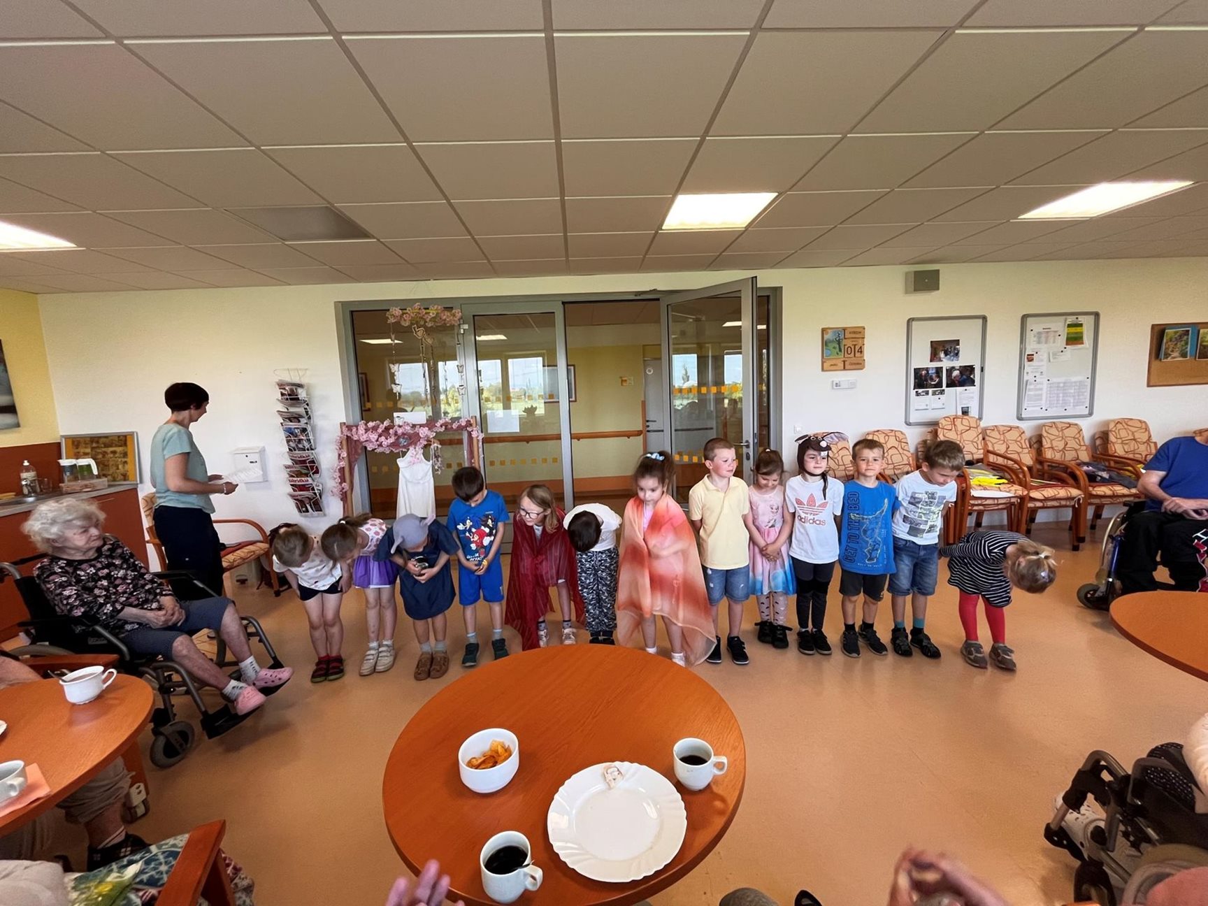 Pro klienty si děti a paní učitelky připravily krásné říkanky, divadlo a tanec. My jsme si pro klienty naopak nachystali drobné občerstvení a sladkou odměnu. Všichni se pobavili a užili si krásný čas.