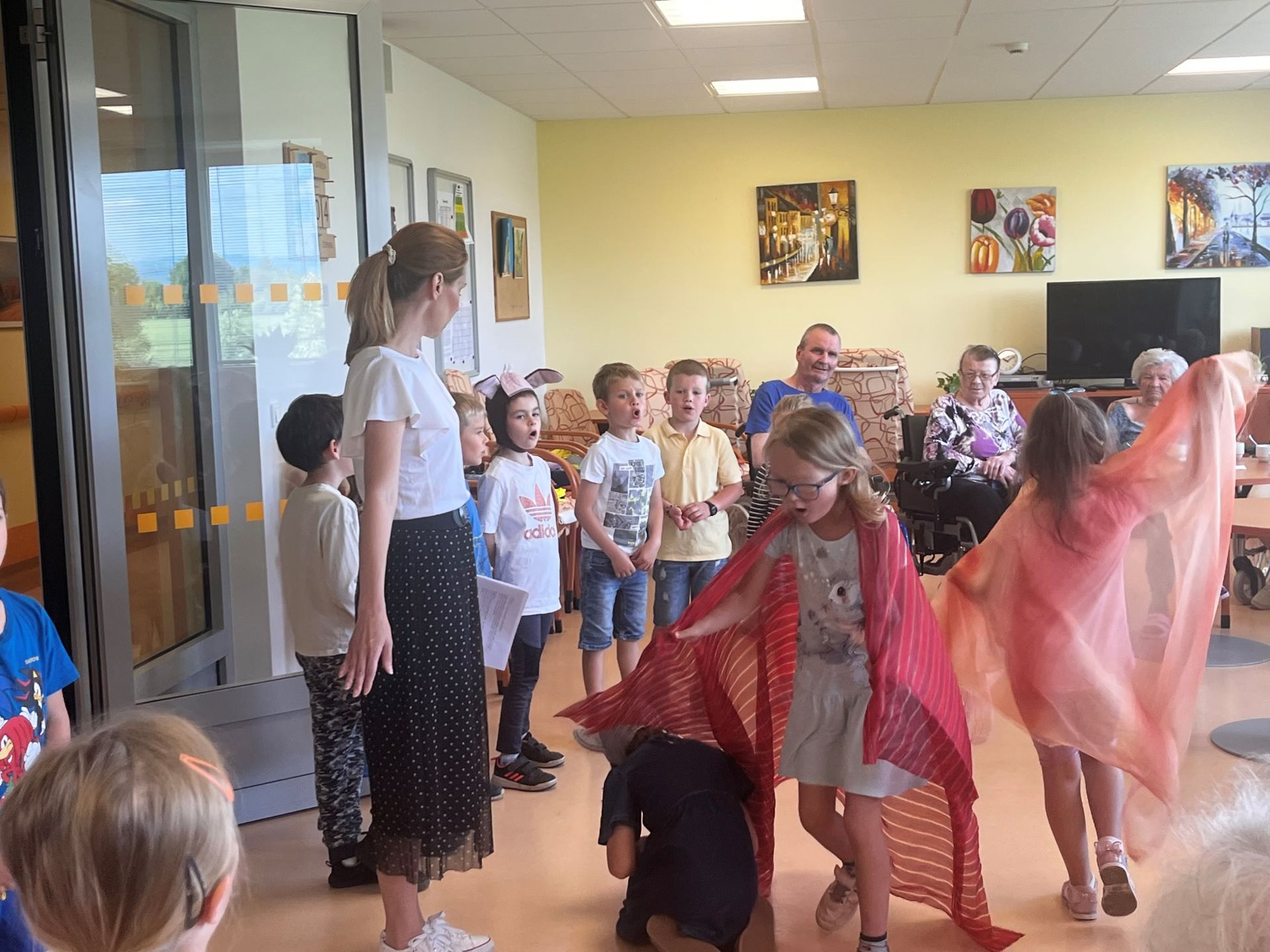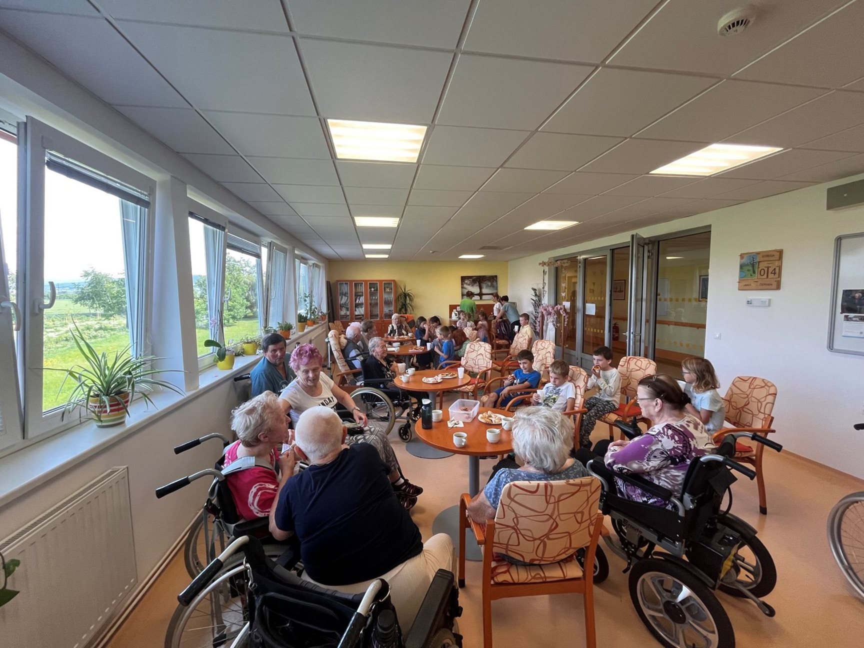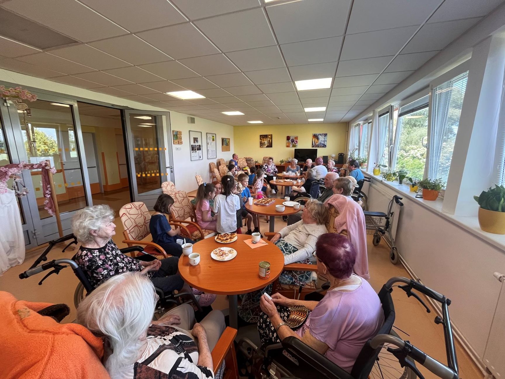 Pro klienty si děti a paní učitelky připravily krásné říkanky, divadlo a tanec. My jsme si pro klienty naopak nachystali drobné občerstvení a sladkou odměnu. Všichni se pobavili a užili si krásný čas.