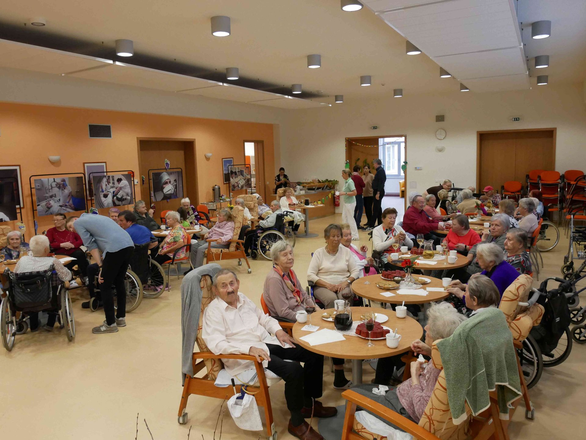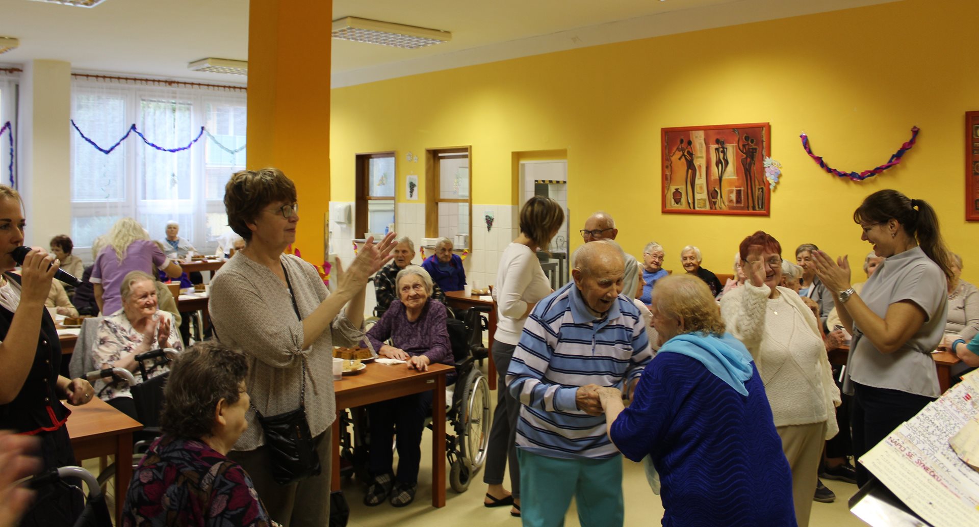 V končících říjnových dnech se náš Domov ponořil do atmosféry vinobraní, která nám přinesla nejen pomyslnou vůni hroznů a pohárky bílého i červeného vína, ale i malebné tóny klasických, nesmrtelných českých písní. Hudba, kterou k nám s potěchou přinášelo manželské duo Magnet, prostupovala každé dopoledne – v úterý oddělení A, ve středu oddělení B a E a ve čtvrtek oddělení C. Staré známé melodie probouzely vzpomínky, obměkčovaly srdce a spojovaly všechny přítomné v radosti ze společně prožitých okamžiků.
