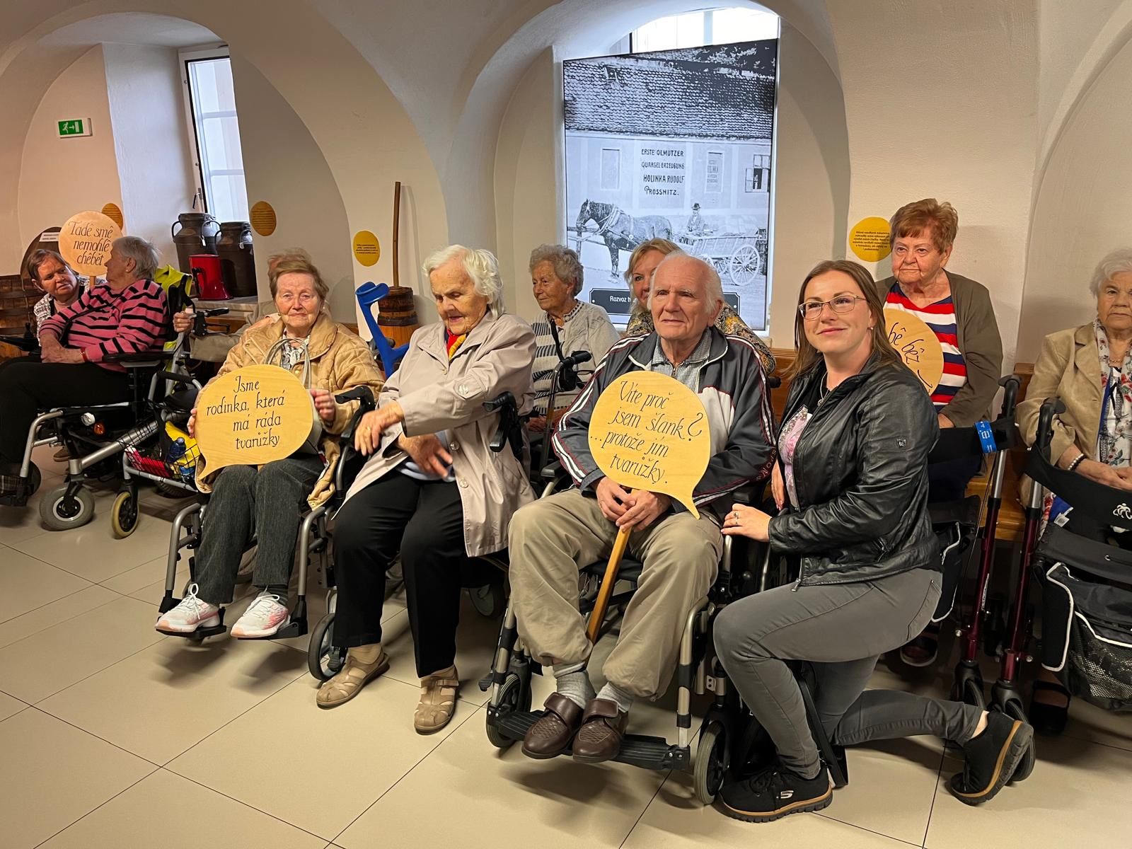 Dnes jsme se vydali krajským autobusem na výlet do Muzea tvarůžků v Lošticích. Nálada byla veselá, posléze i voňavá. Po prohlídce muzea, se slovním komentářem úžasné paní průvodkyně, jsme nakoupili nejen tvarůžkové dobroty v blízkém obchůdku. Na závěr jsme si dopřáli výborný oběd v restauraci U Coufalů. Moc děkujeme personálu za trpělivost a ochotu!