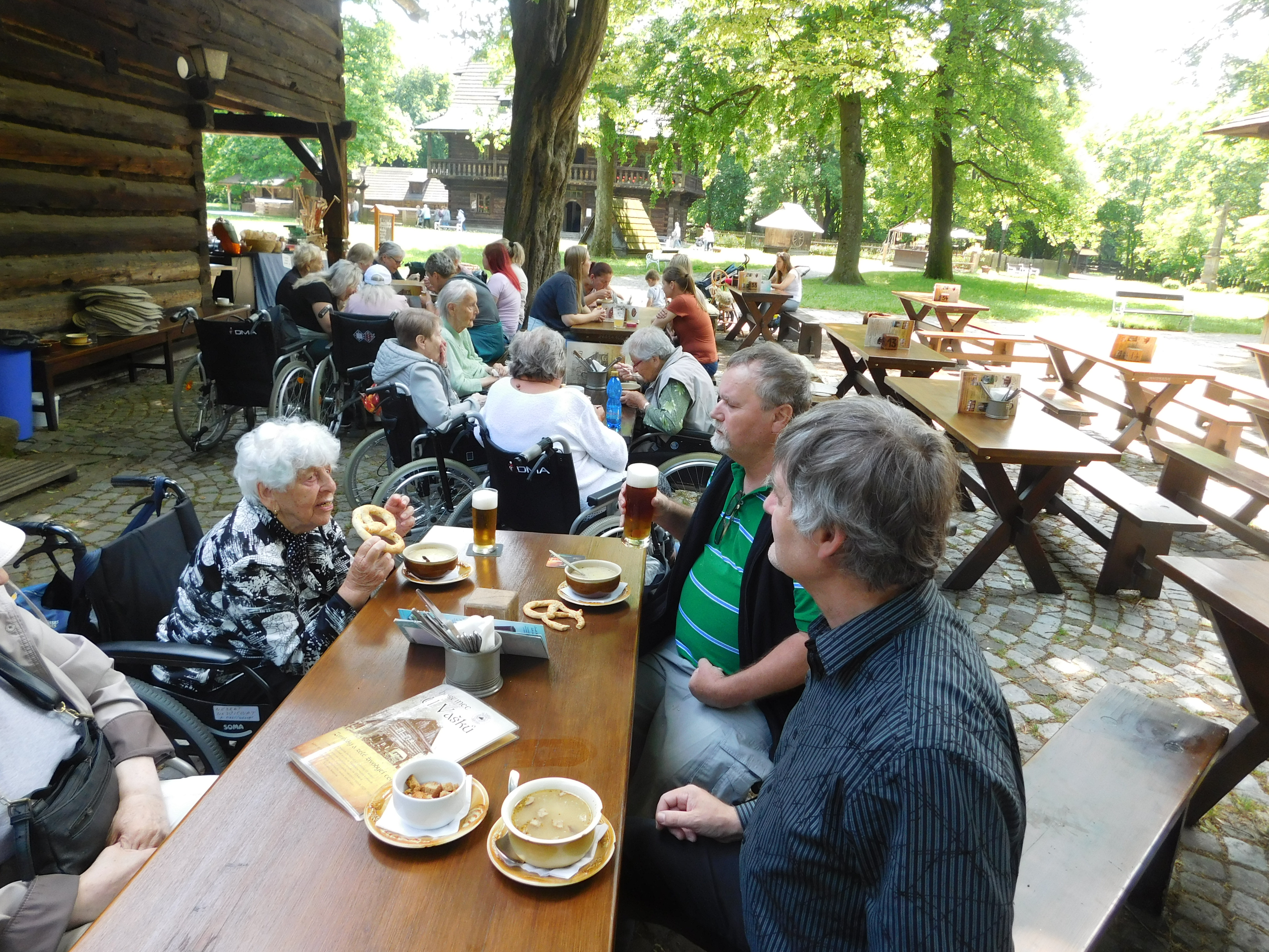 Klienti a personál budovy E se účastnili dne 8. 6. 2023 autobusového výletu do Valašského muzea v Rožnově pod Radhoštěm. Za účasti průvodce muzea jsme měli připravenou komentovanou prohlídku celým dřevěným městečkem a také jsme ochutnali tradiční místní kuchyni - kyselici, česnečku, anebo halušky. Jako dárek si mnozí odvezli tradiční frgál. Děkujeme Olomouckému kraji za zajištění bezplatné bezbariérové dopravy pro naše klienty a také Valašskému muzeu za umožnění vstupu do celého areálu rovněž pro naše klienty zdarma, a také velký dík patří panu průvodci, který nás po celý čas doprovázel.