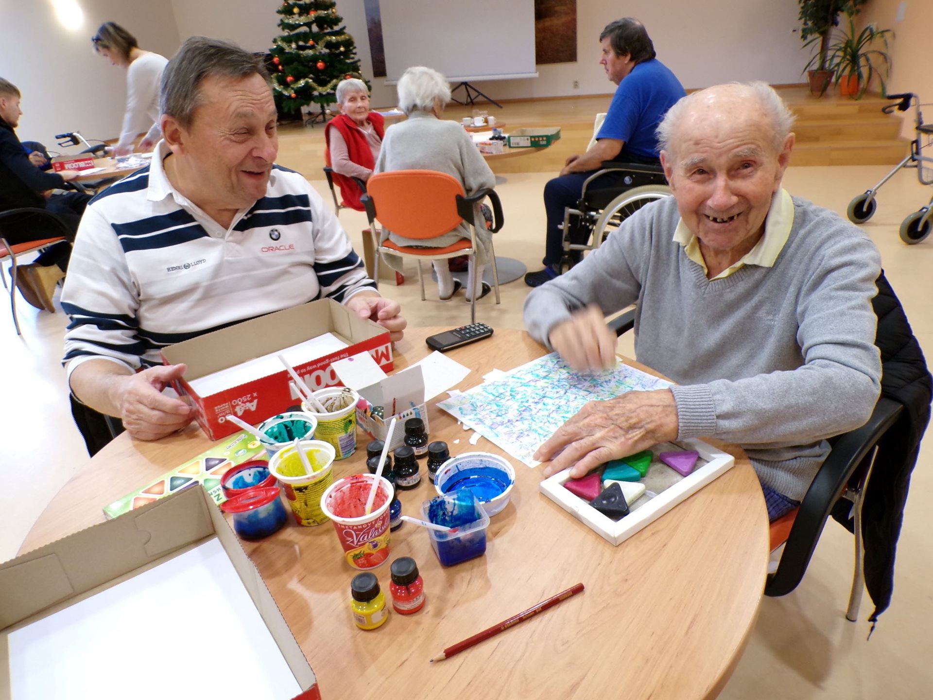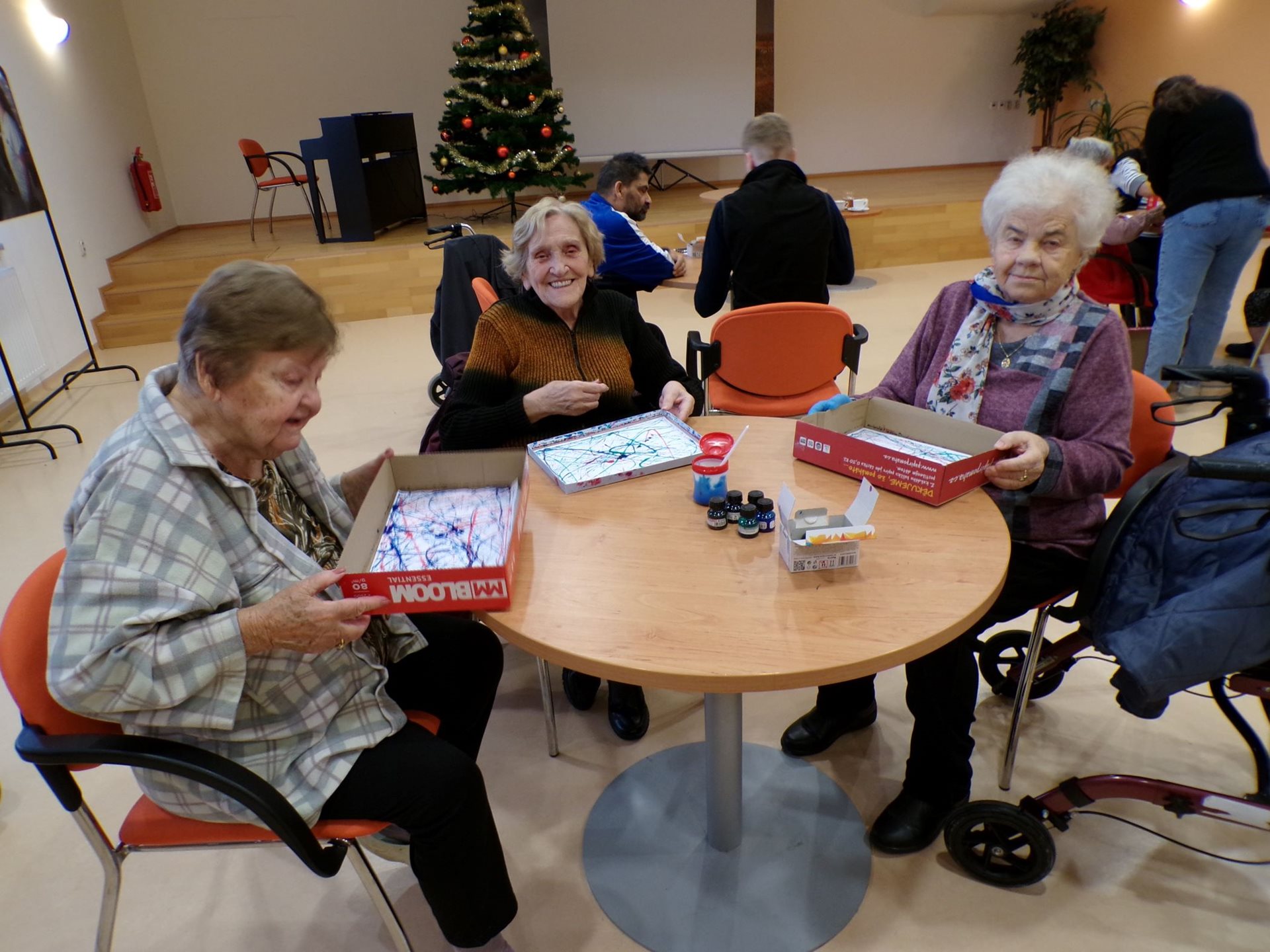 Dne 21.11.2024 si klienti v sále budovy C vyzkoušeli zajímavé výtvarné techniky – kreslení skleněnými kuličkami a frotáž. Klienti se do práce pustili se zaujetím, dílo se dařilo a výsledky si budeme moci následně prohlédnout na výstavě.
