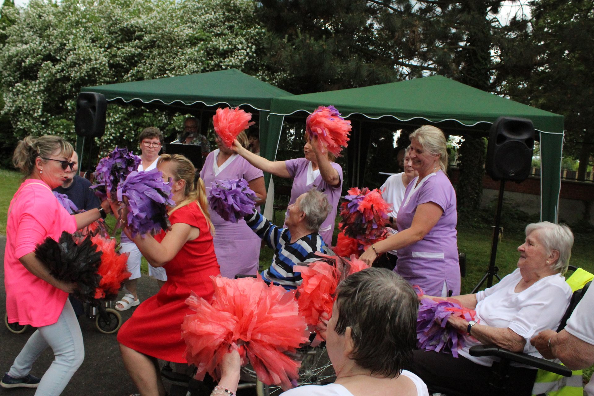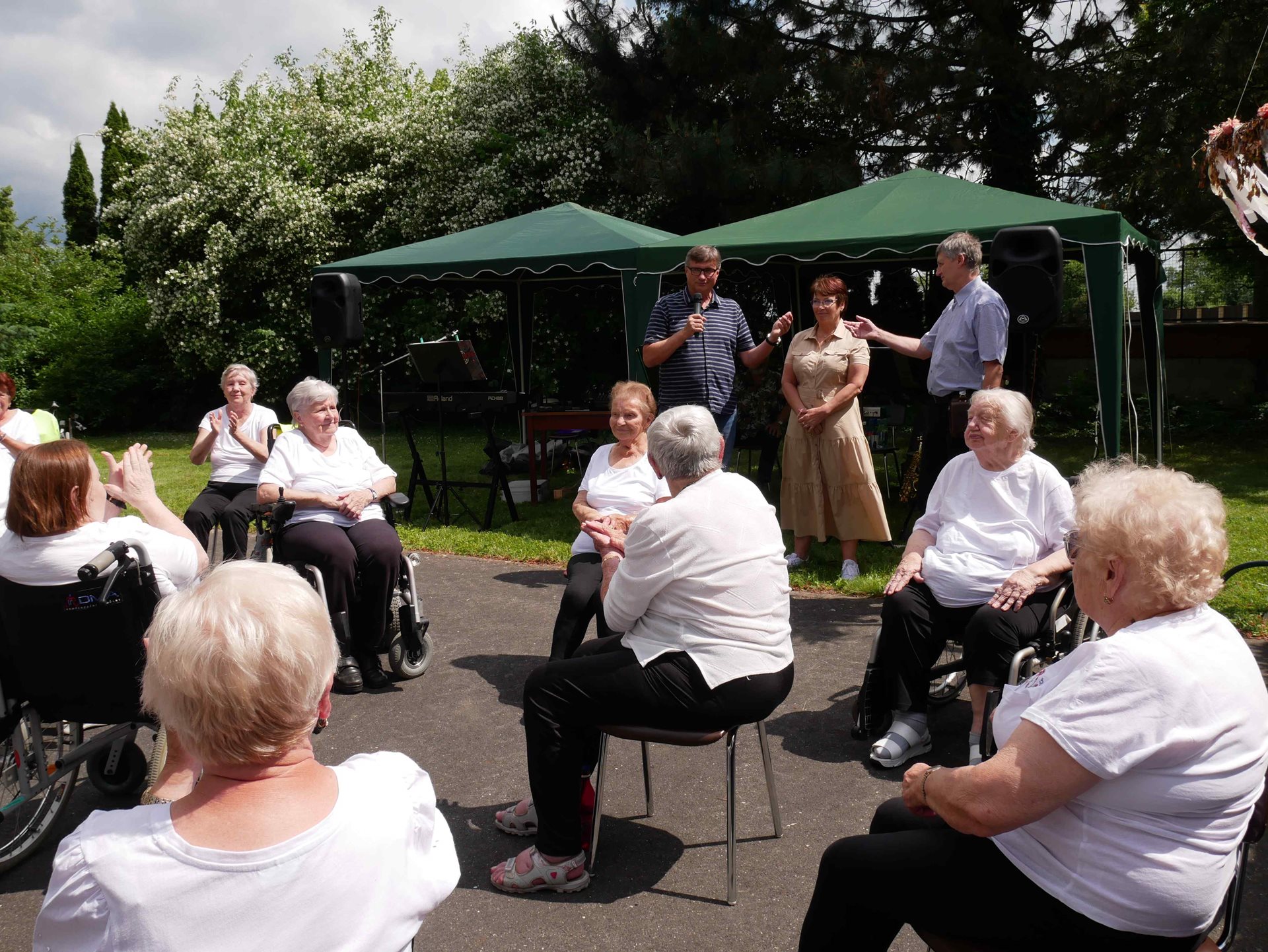 Dne 29.5.2024 se uskutečnila Zahradní slavnost, při které jsme poděkovali za dlouholetou práci panu řediteli PaedDr. Jiřímu Floderovi a vrchní sestře Haně Marešové. Příspěvkem do programu bylo společné cvičení klientů pod vedením Hany Kloboučníkové. K tanci a poslechu hrála živá hudba p. Ludvíka. Tancovaly také krásné břišní tanečnice. Májku skácel náměstek hejtmana Ivo Slavotínek spolu s PaedDr. Floderem. Klientům byl představen nový ředitel Mgr. Lubomír Vraj.